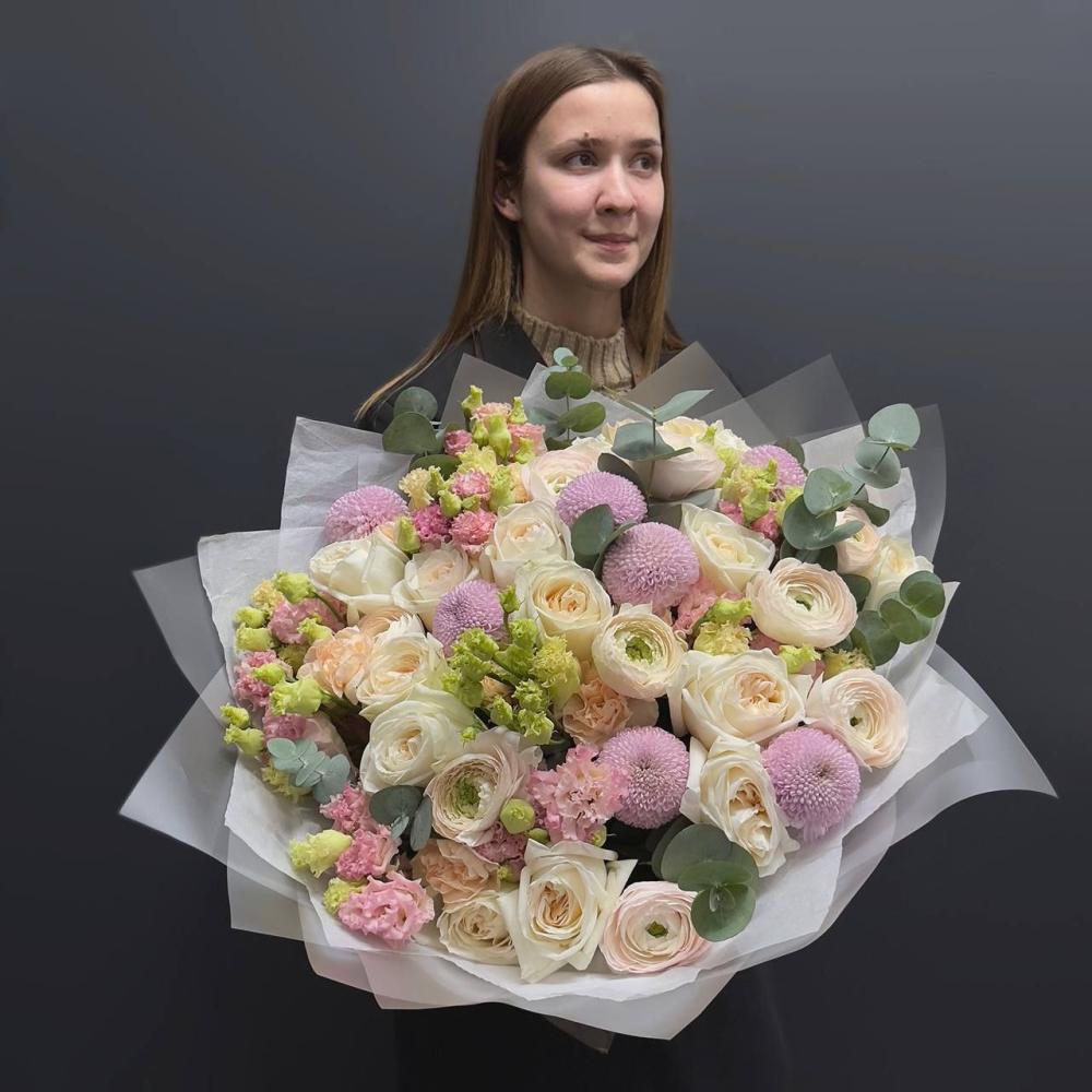 Каждый наш букет - дизайнерская композиция. Все их невозможно повторить в точности из-за сезонности и природной уникальности внешнего вида каждого цветка. Но мы сохраним размер, атмосферу и стилистику.