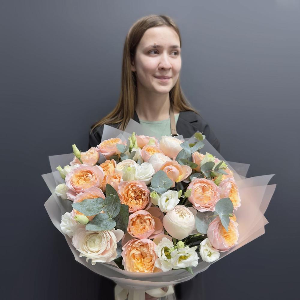 Каждый наш букет - дизайнерская композиция. Все их невозможно повторить в точности из-за сезонности и природной уникальности внешнего вида каждого цветка. Но мы сохраним размер, атмосферу и стилистику.