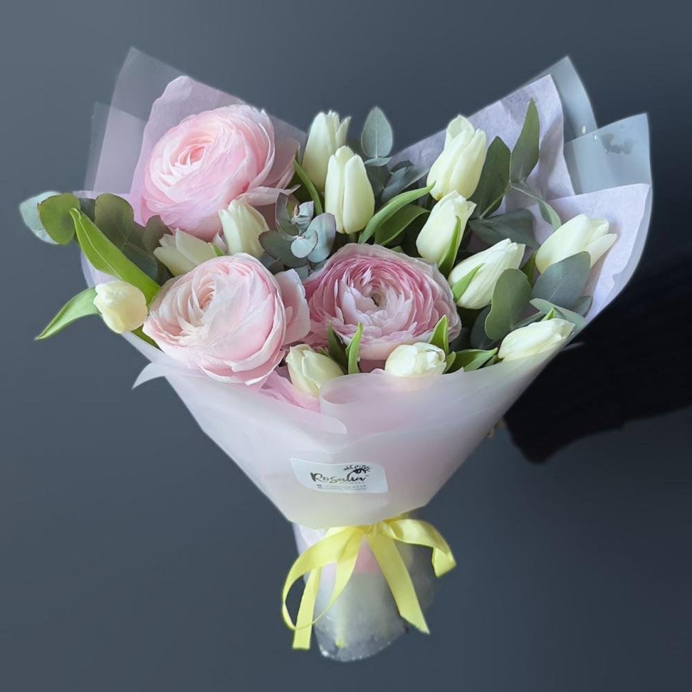 Букет-комплимент с нежными ранункулюсами Доставляется в транспортировочной коробке