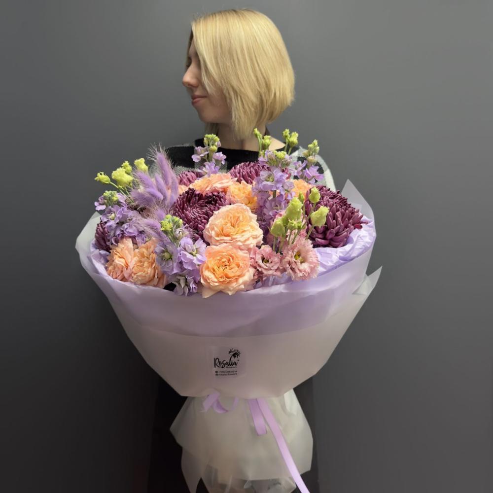 Каждый наш букет - дизайнерская композиция. Все их невозможно повторить в точности из-за сезонности и природной уникальности внешнего вида каждого цветка. Но мы сохраним размер, атмосферу и стилистику.