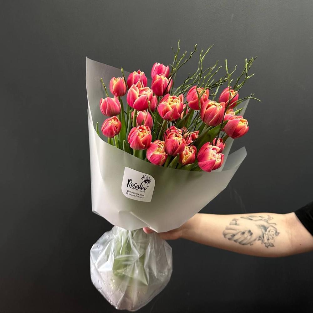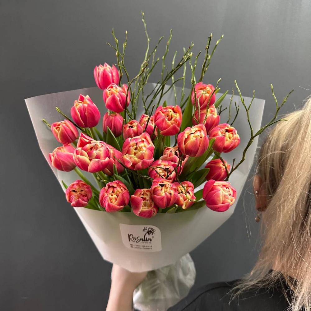 Букет из 25 пионовидных тюльпанов Доставляется в транспортировочной коробке