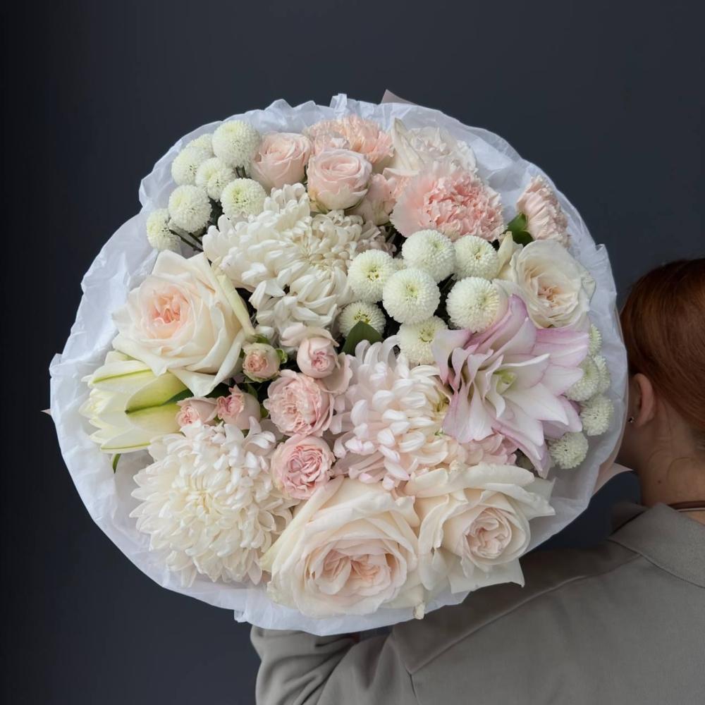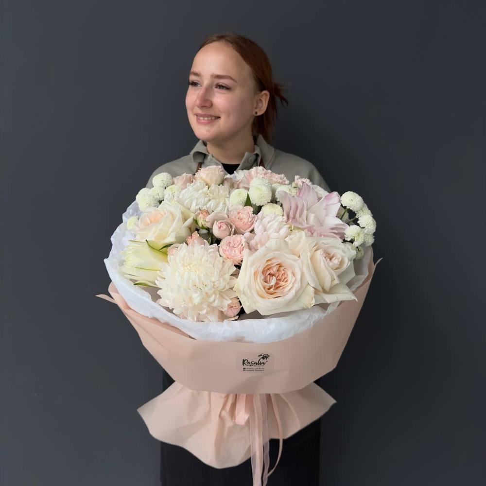 Каждый наш букет - дизайнерская композиция. Все их невозможно повторить в точности из-за сезонности и природной уникальности внешнего вида каждого цветка. Но мы сохраним размер, атмосферу и стилистику.