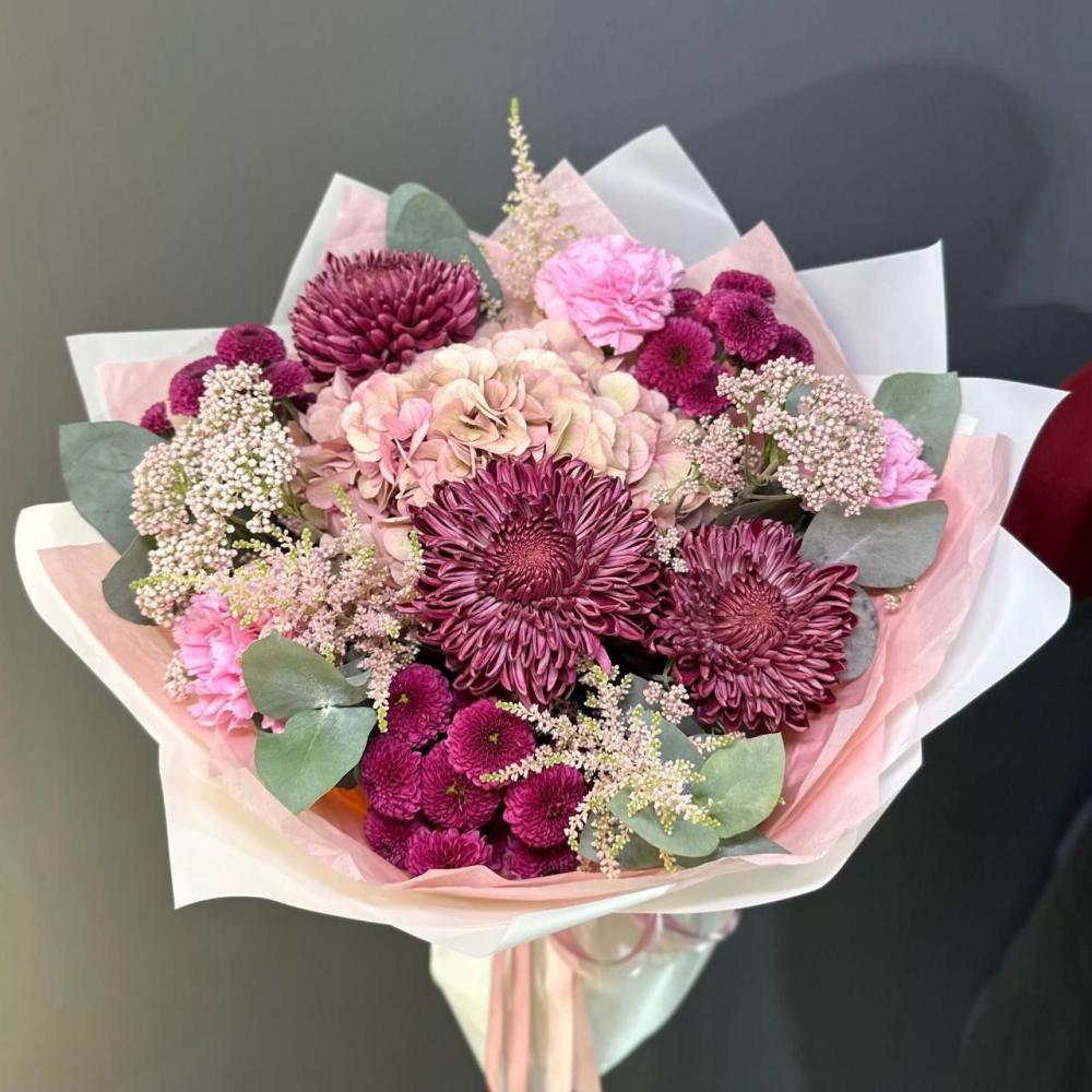 Нежный букет с сезонной хризантемой бигуди Доставляется в транспортировочной коробке