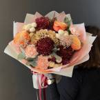 Каждый наш букет - дизайнерская композиция. Все их невозможно повторить в точности из-за сезонности и природной уникальности внешнего вида каждого цветка. Но мы сохраним размер, атмосферу и стилистику.
