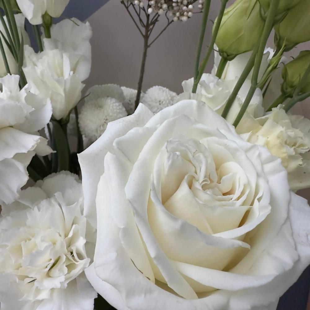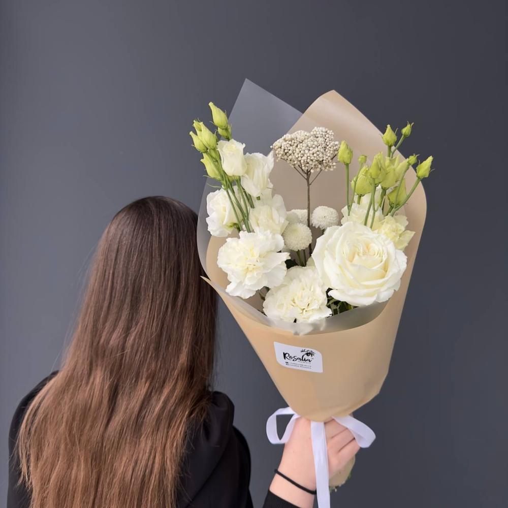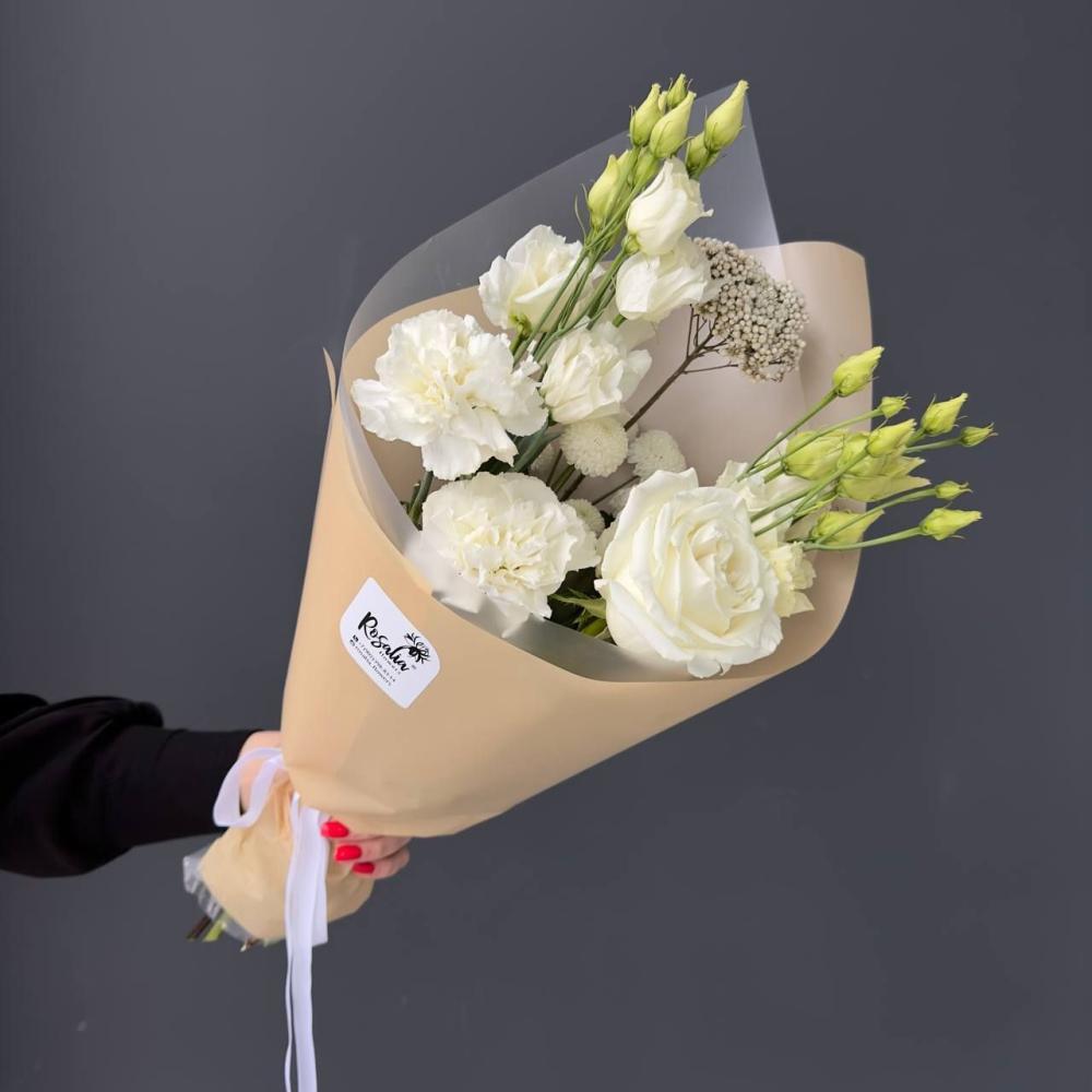 Букет в светлой цветовой гамме, нежный и воздушный Доставляется в транспортировочной коробке