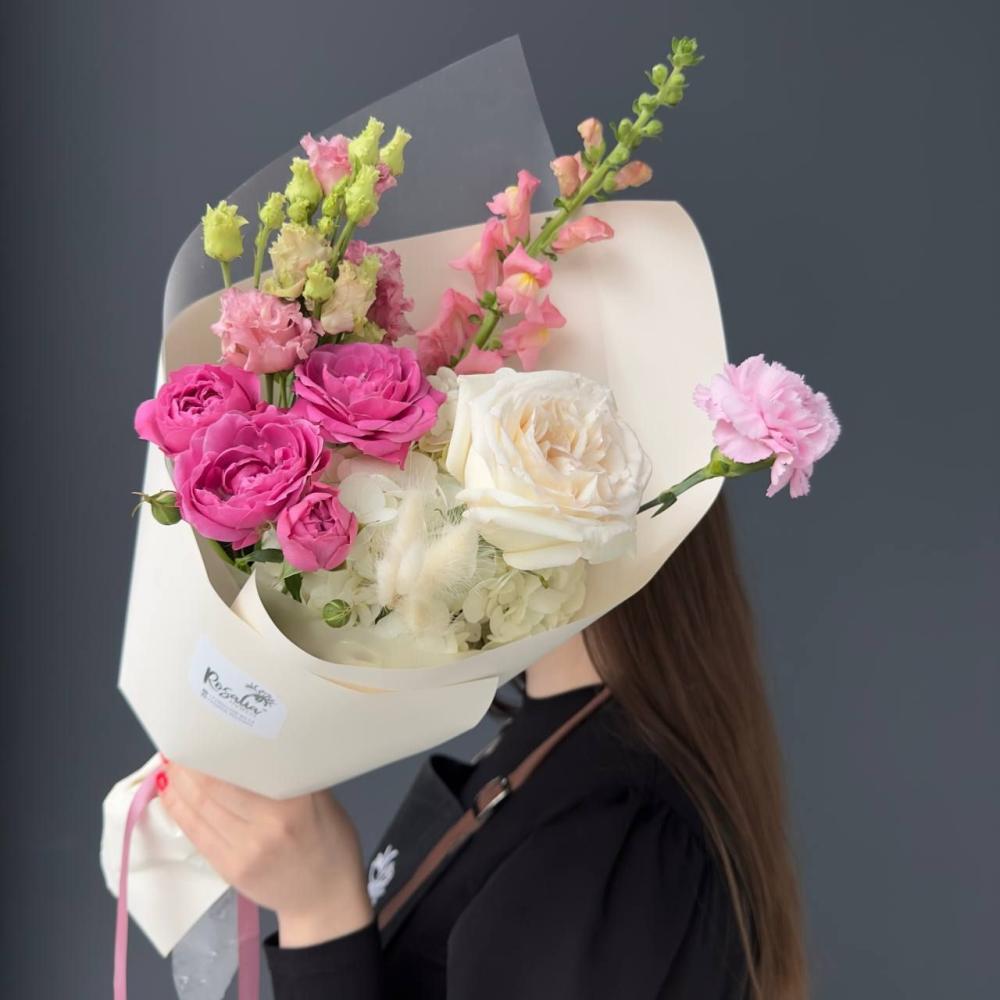 Каждый наш букет - дизайнерская композиция. Все их невозможно повторить в точности из-за сезонности и природной уникальности внешнего вида каждого цветка. Но мы сохраним размер, атмосферу и стилистику.