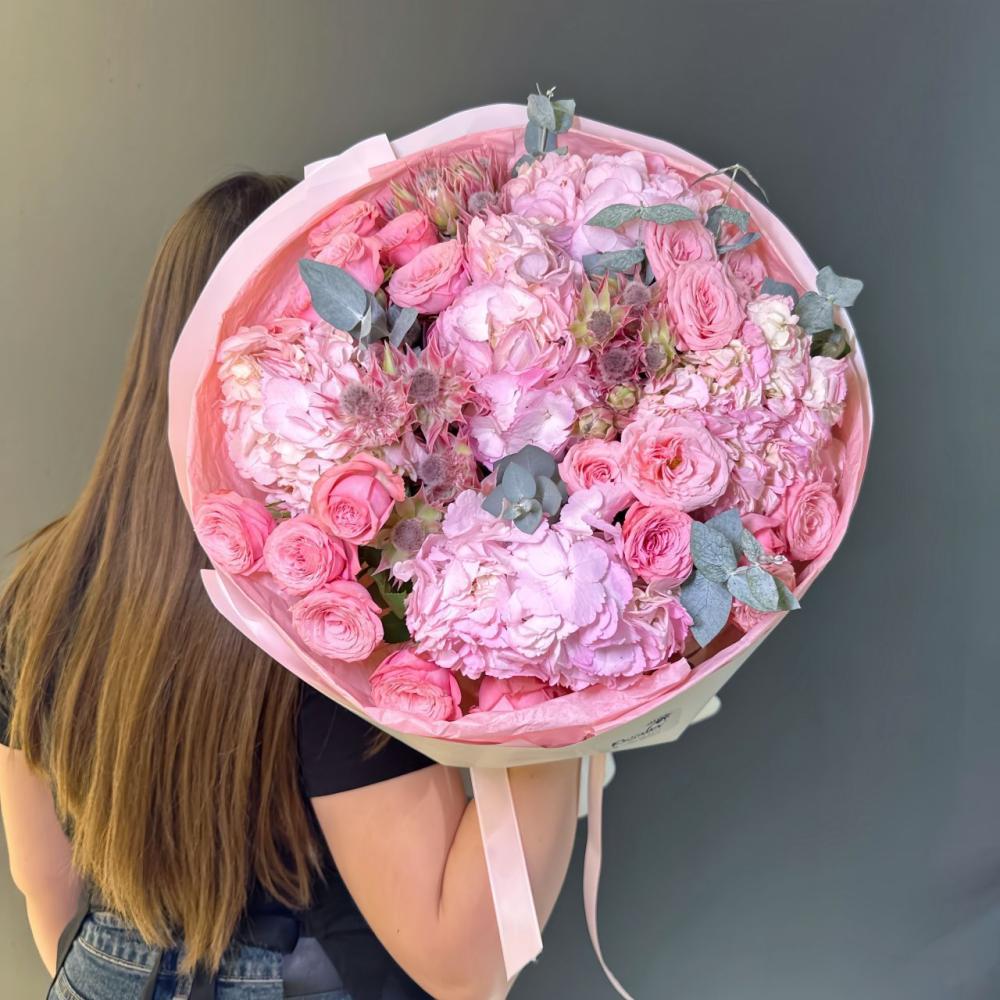 Нежный букет с шикарной гортензией