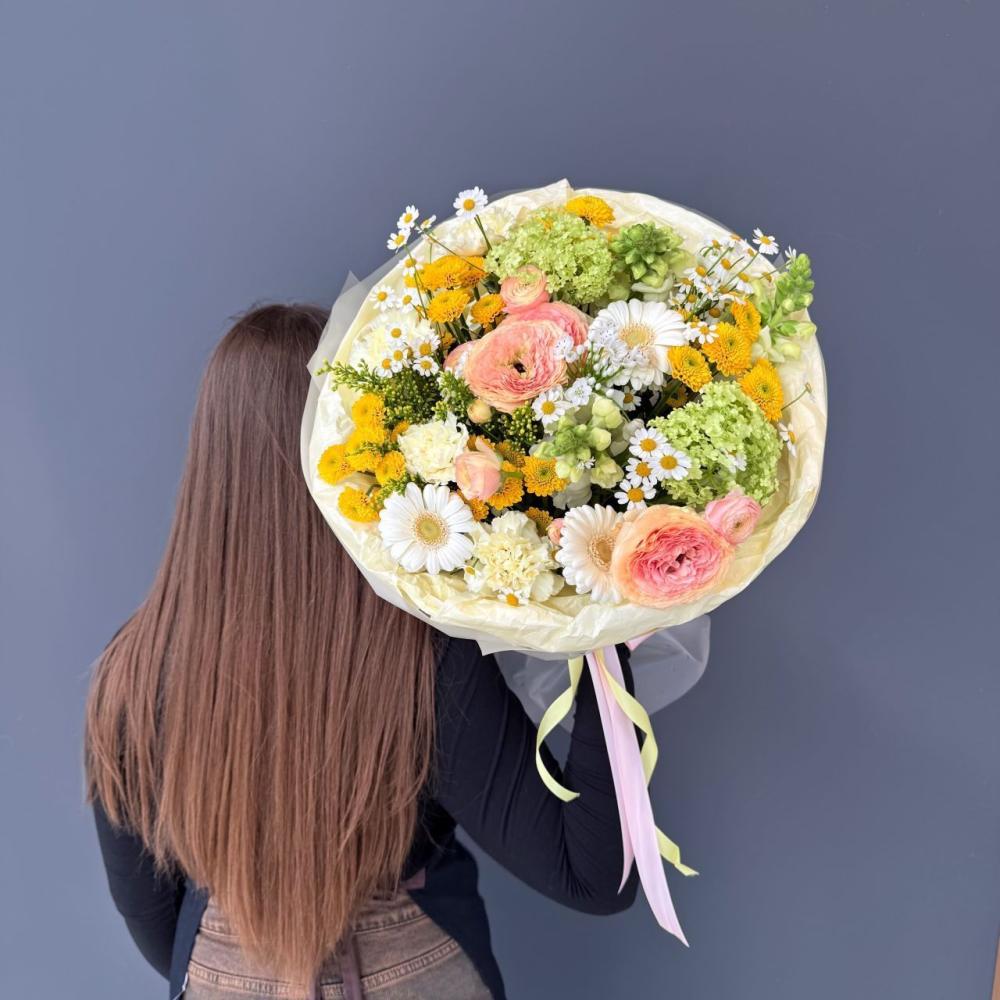 Каждый наш букет - дизайнерская композиция. Все их невозможно повторить в точности из-за сезонности и природной уникальности внешнего вида каждого цветка. Но мы сохраним размер, атмосферу и стилистику.