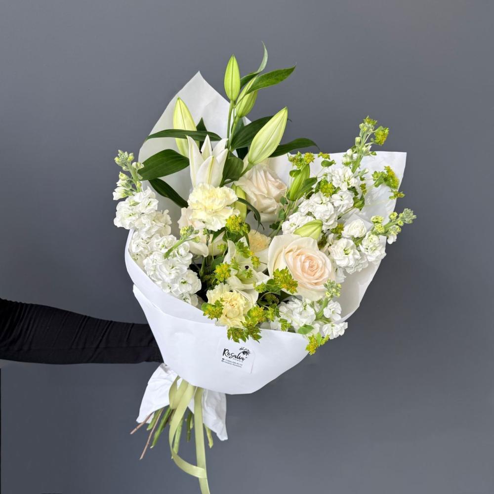 Ароматный букет с лилей и маттиолой. Классика, которая всегда актуальна. Выбрав этот букет вы точно не ошибетесь. Доставляется в транспортировочной коробке.