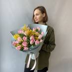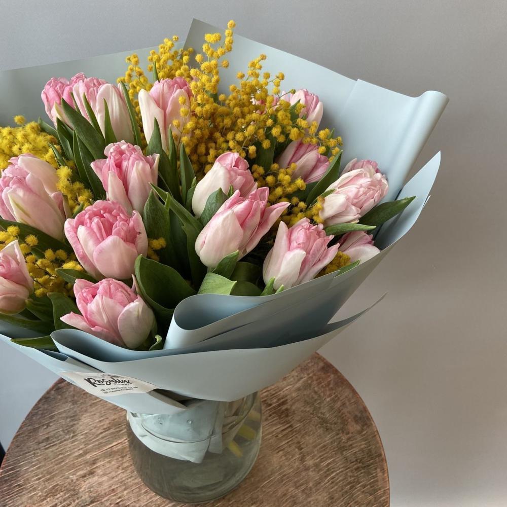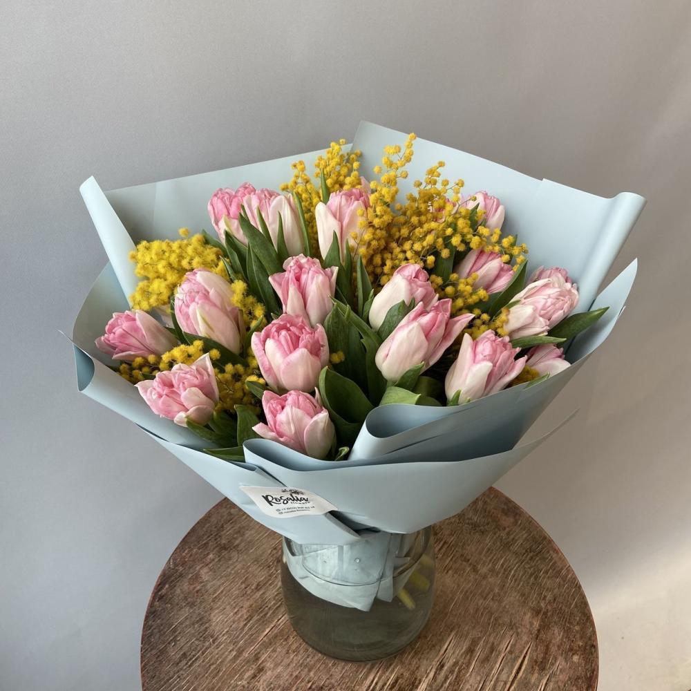 Весенний букет из тюльпанов и мимозы с безумным ароматом Доставляется в транспортировочной коробке