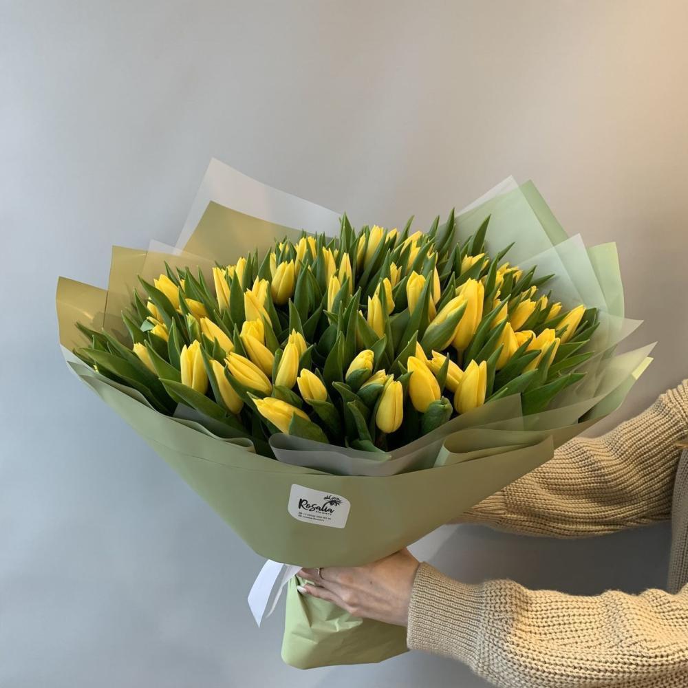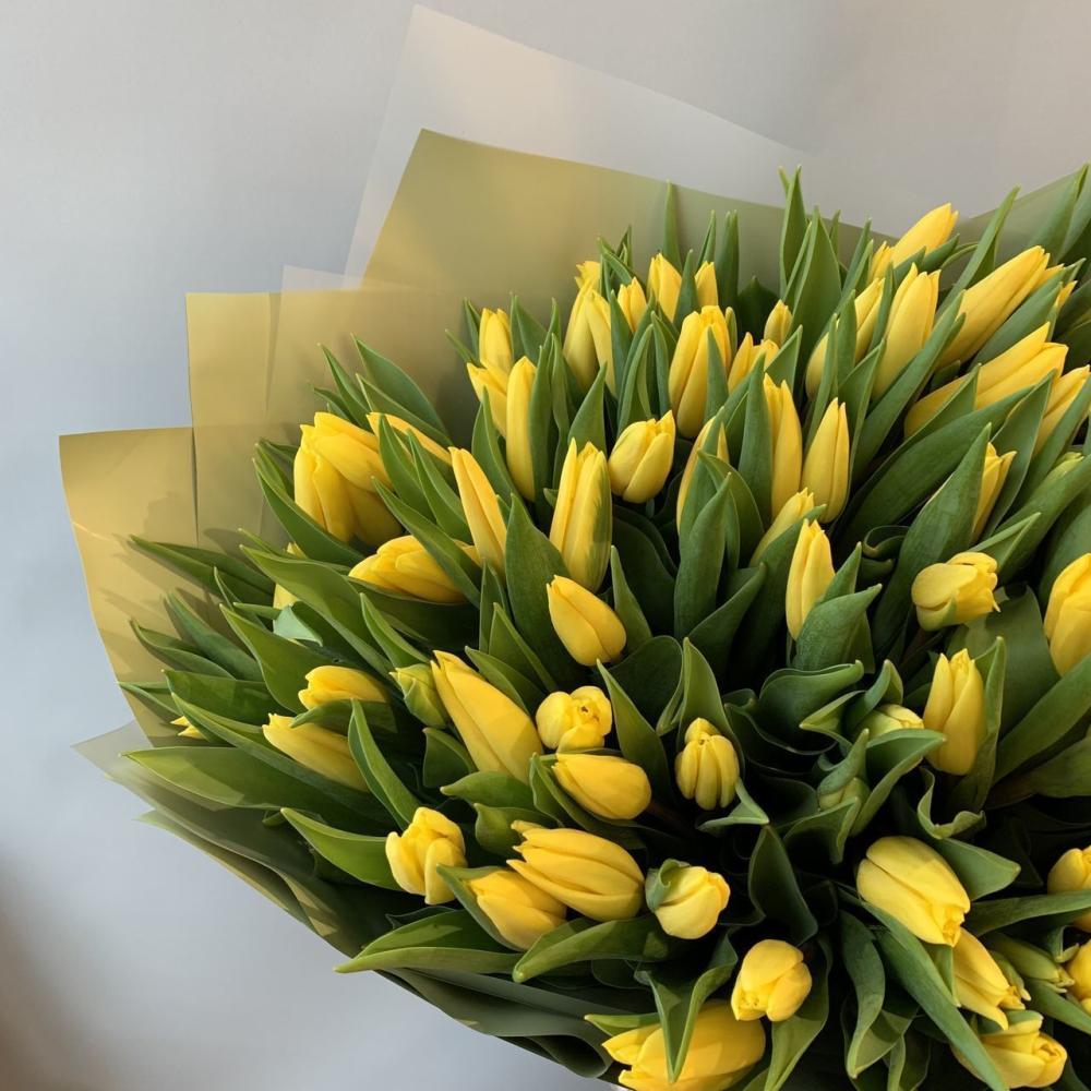 Монобукет из 101 шт желтого тюльпана Доставляется в транспортировочной коробке