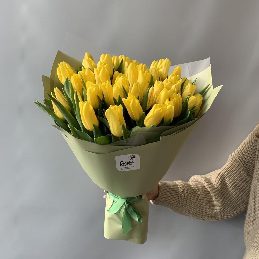 Монобукет из 51 шт желтых тюльпанов Доставляется в транспортировочной коробке