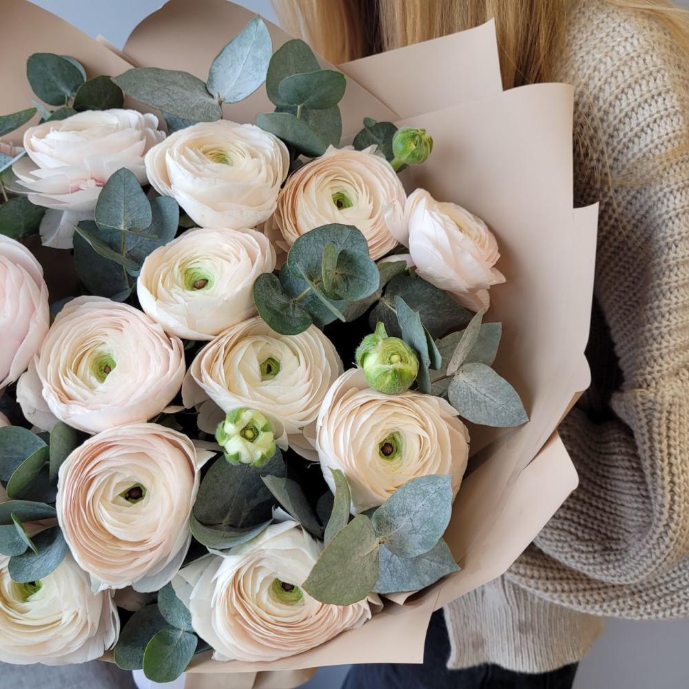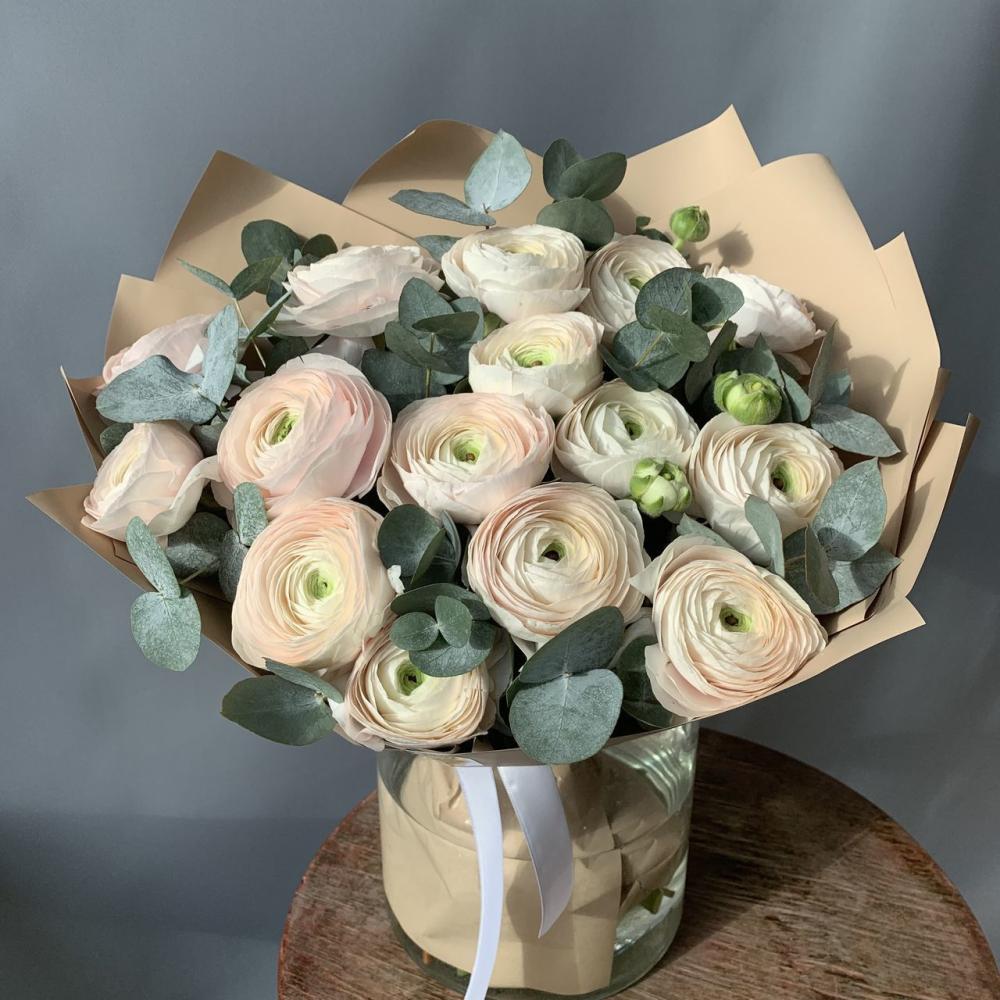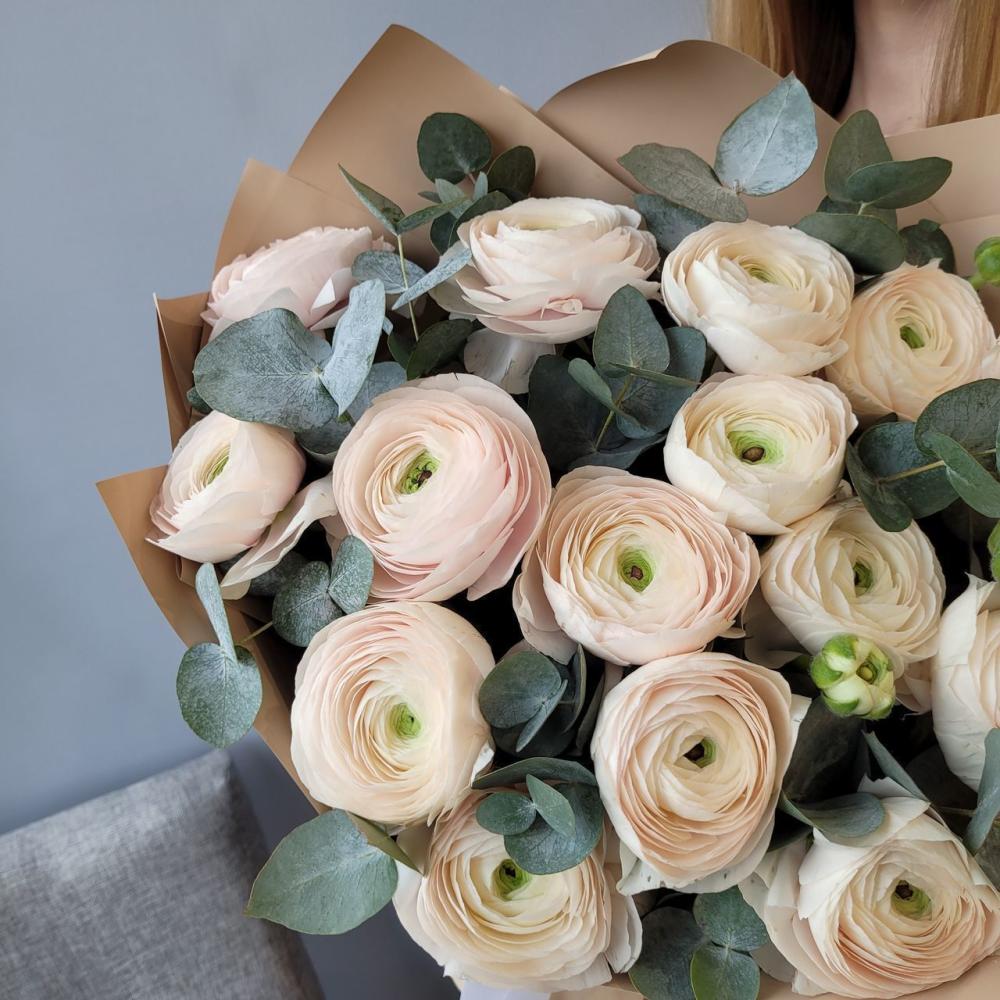 Шикарный монобукет из нежных стойких ранункулюсов Доставляется в транспортировочной коробке