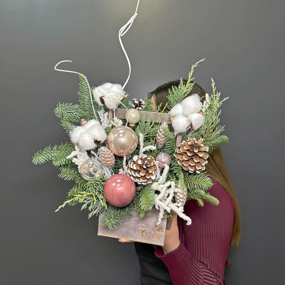 Новогодняя композиция в нежном розовом цвете - идеальный подарок для себя и близких