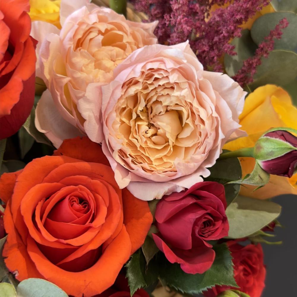 Осенняя яркая композиция с пионовидными розами