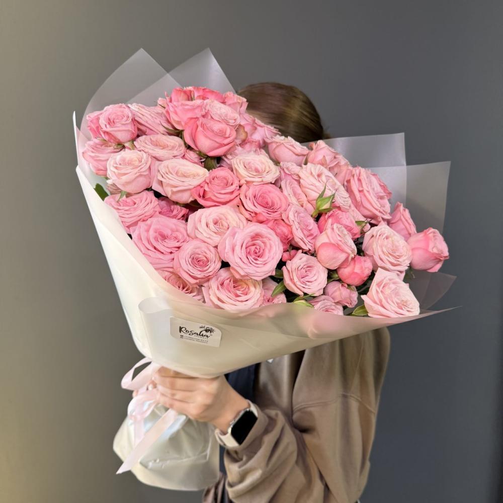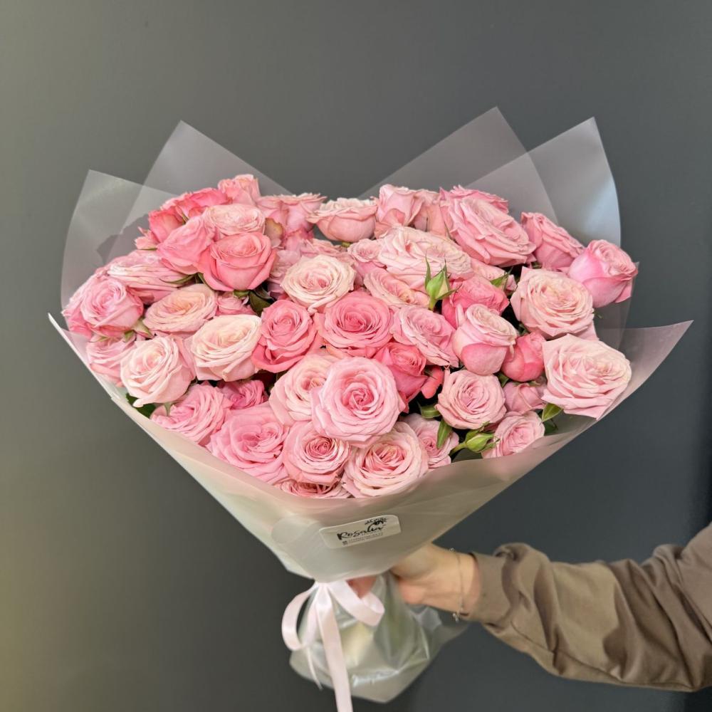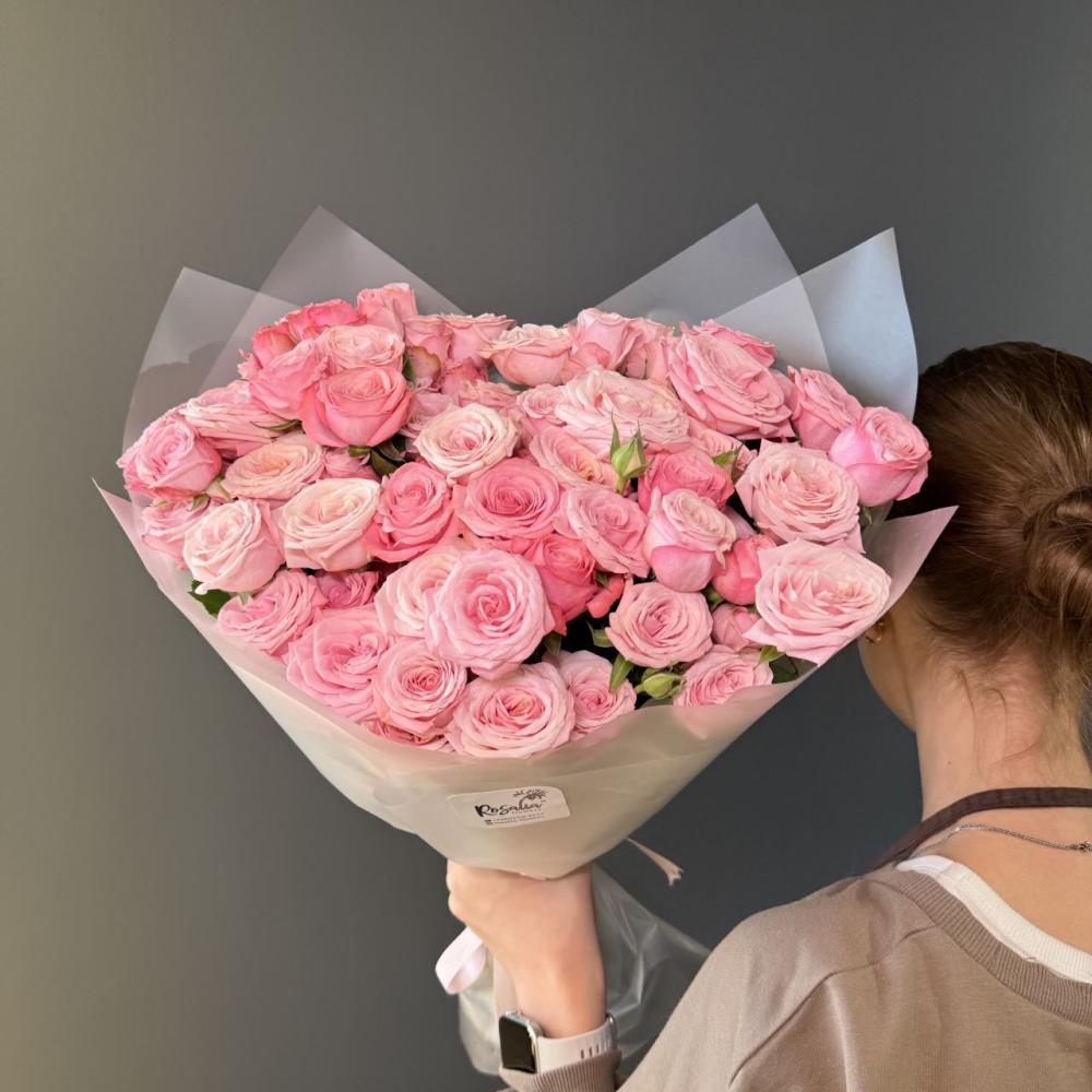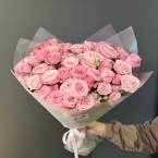 Монобукет из 15 кустовых роз с оформлением Доставляется в транспортировочной коробке