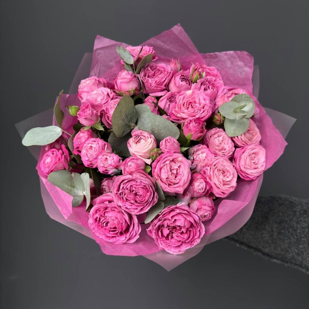 монобукет из 9 шт кустовой пионовидной розы Доставляется в транспортировочной коробке