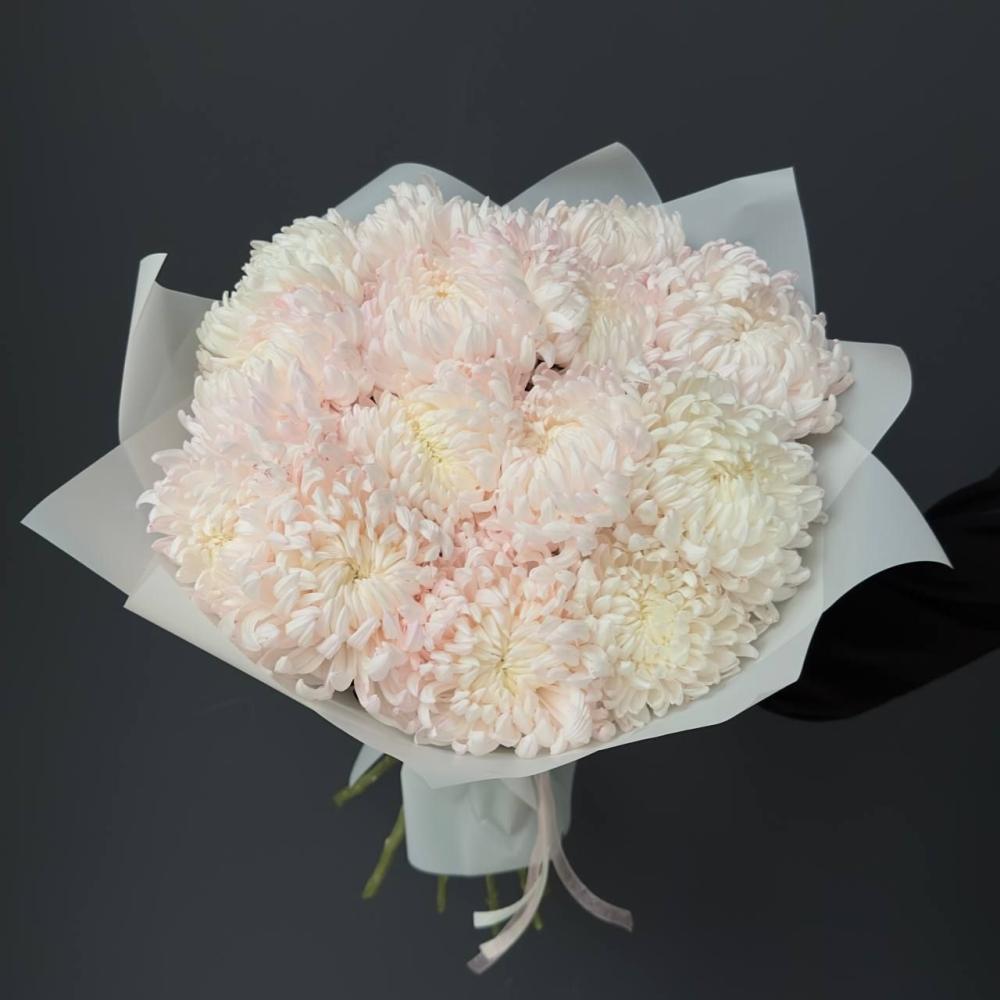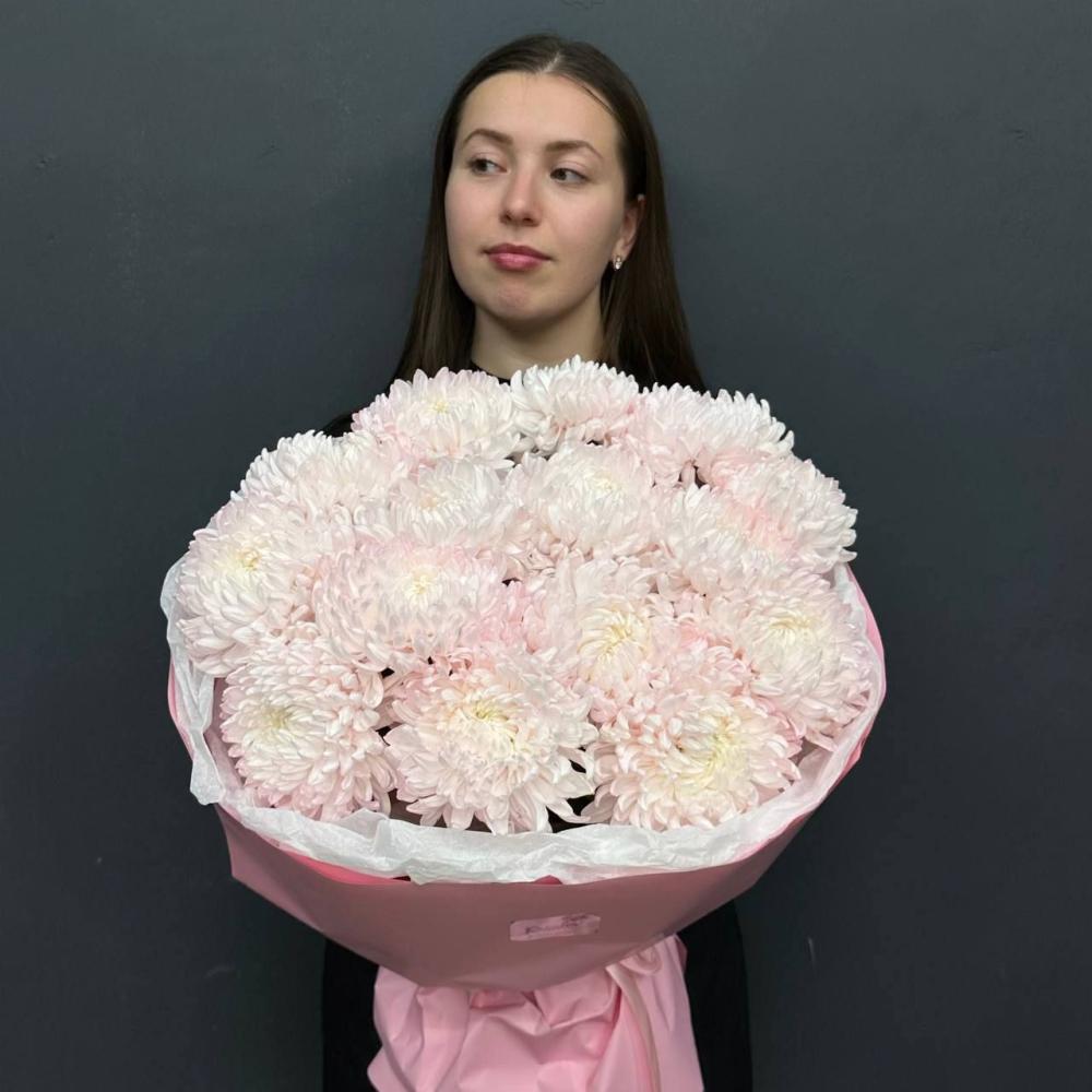 Нежный зефирный букет из сезонной хризантемы ( в букете 15 штук) Доставляется в транспортировочной коробке