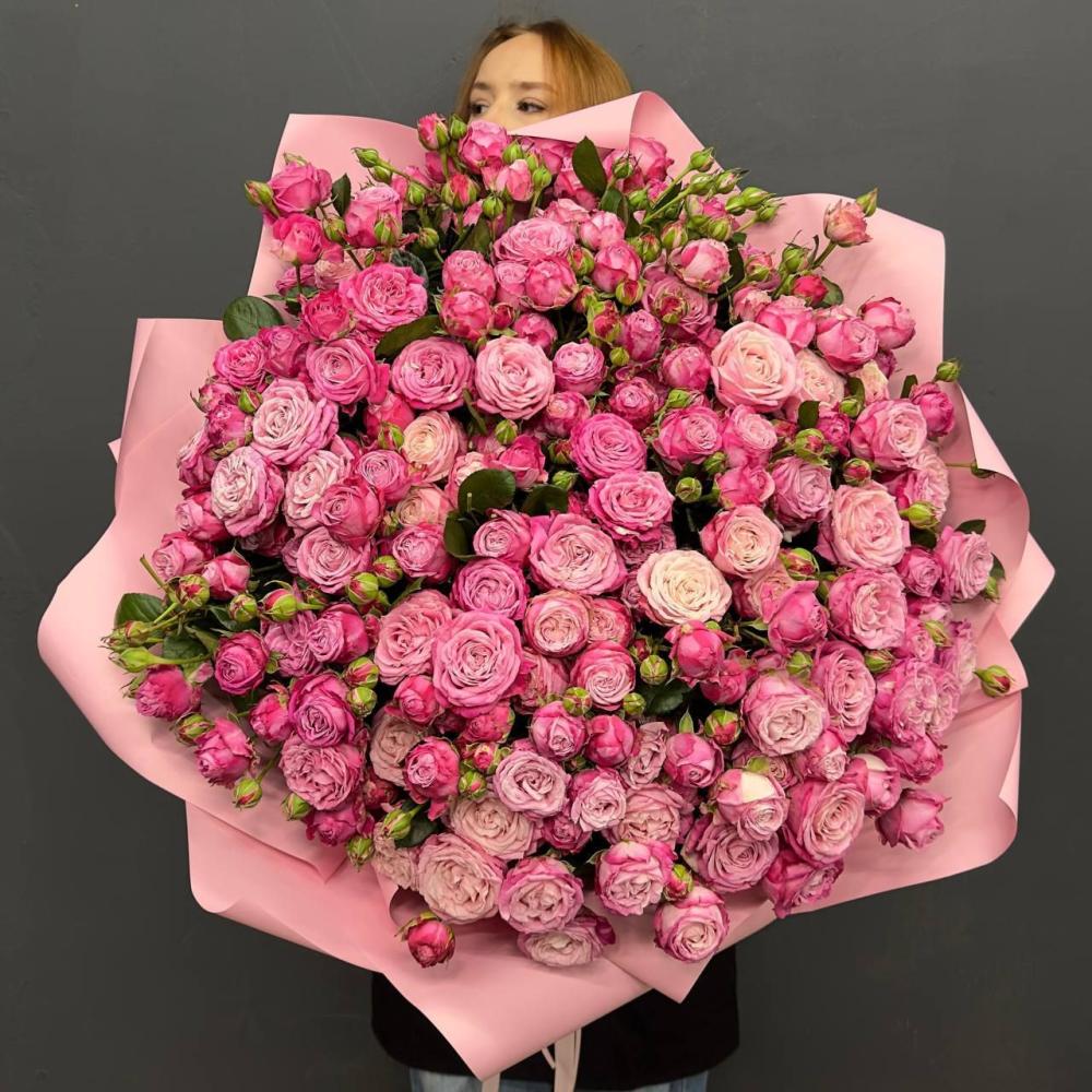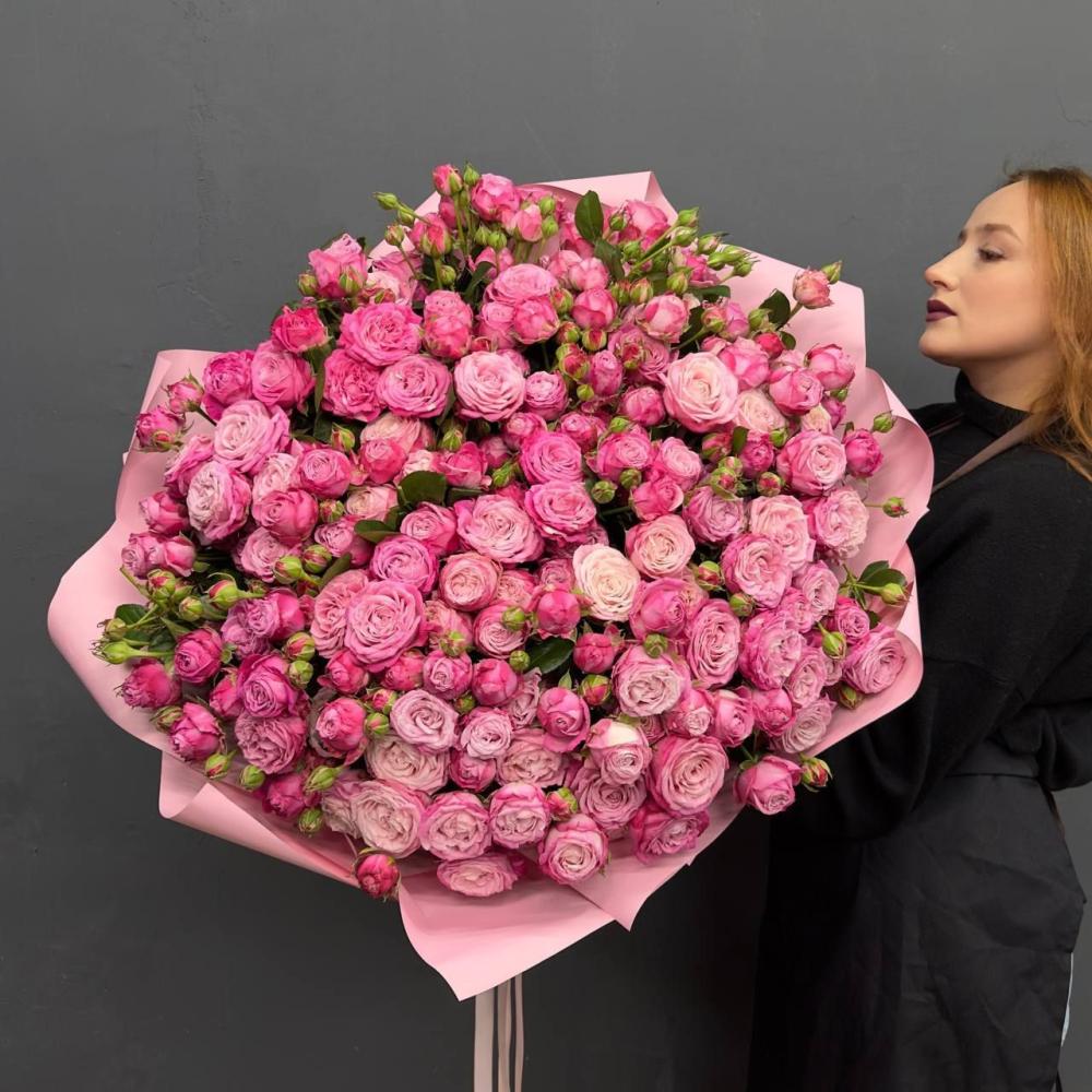 Яркий букет из кустовых пионовидных роз покорит сердце каждой доставляется в транспортировочной коробке
