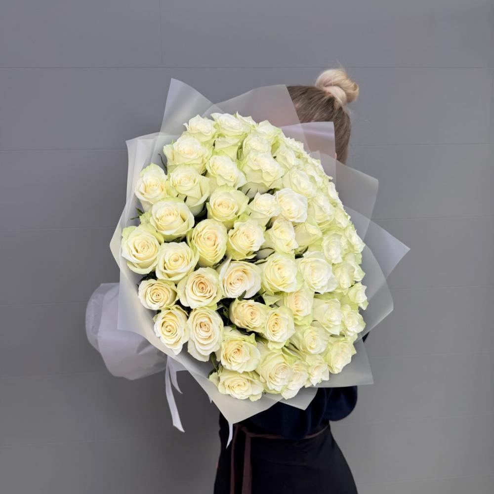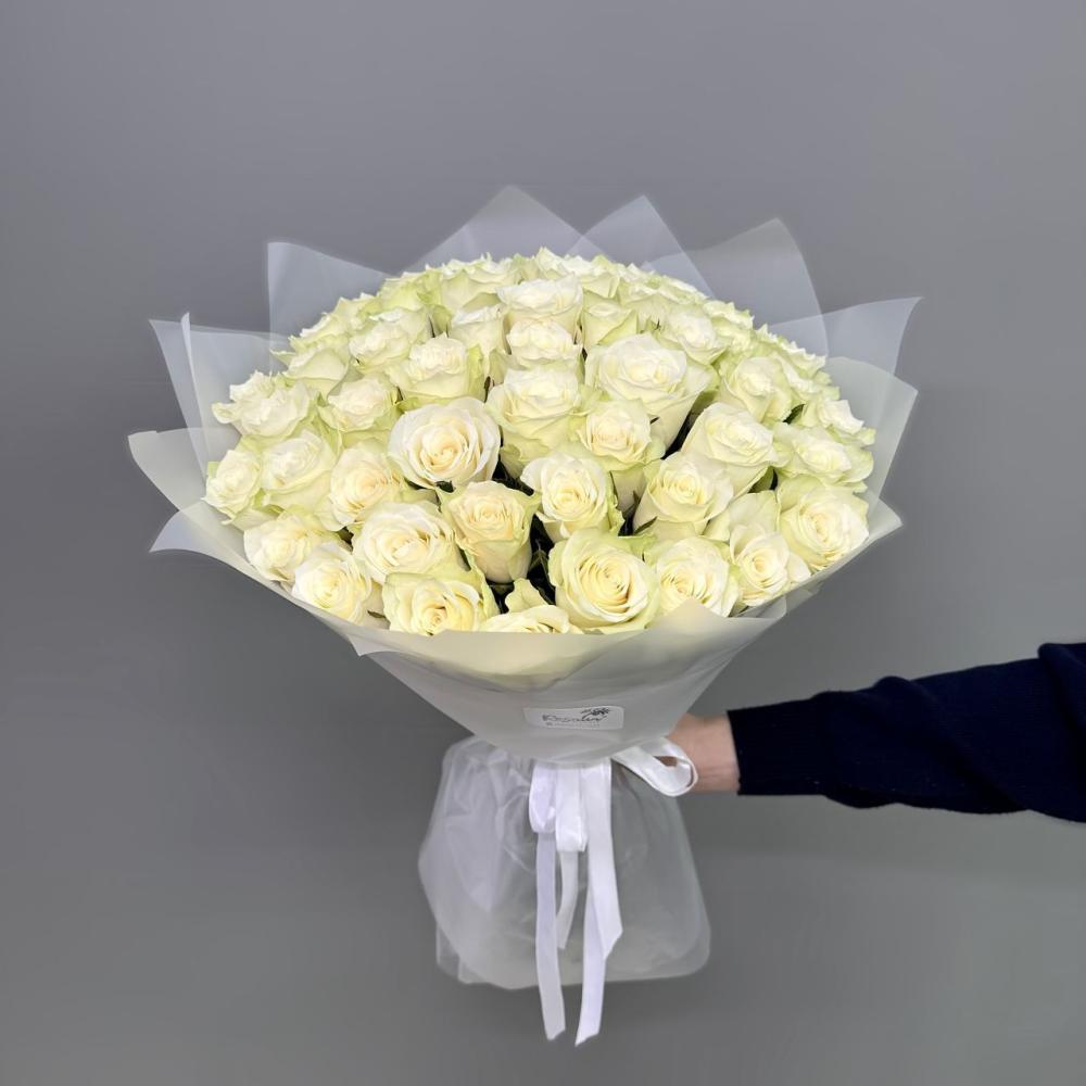 Классическая нежная роскошь - букет из 55 белых кенийских роз Доставляется в транспортировочной коробке