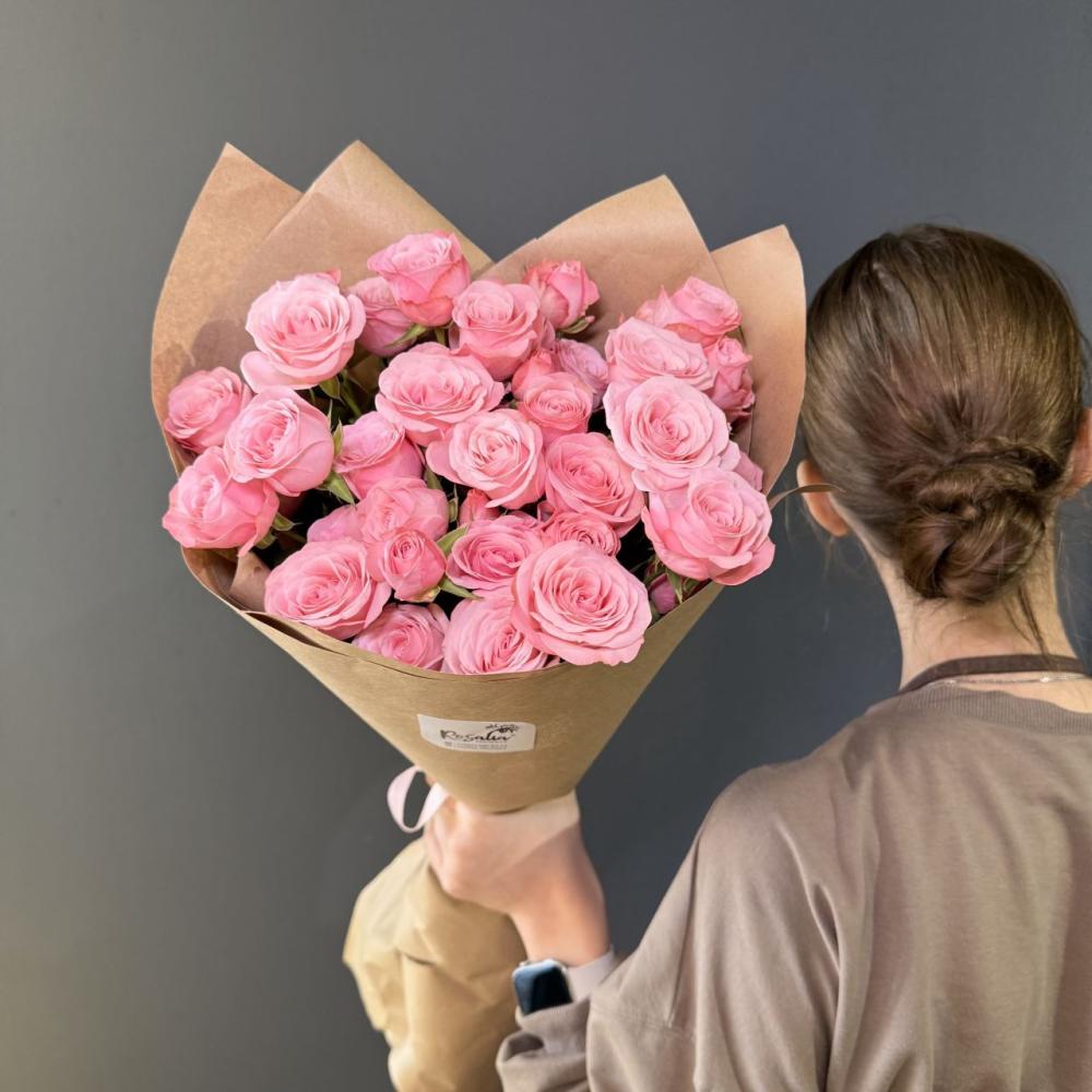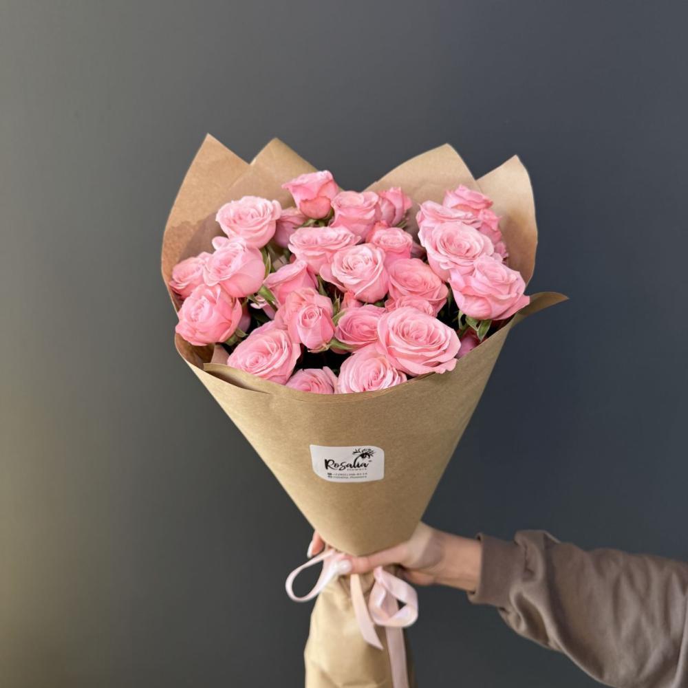 Монобукет из 7 веток кустовой розы в упаковке Доставляется в транспортировочной коробке