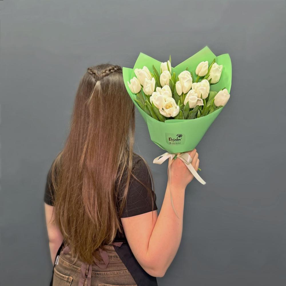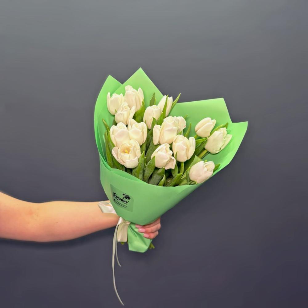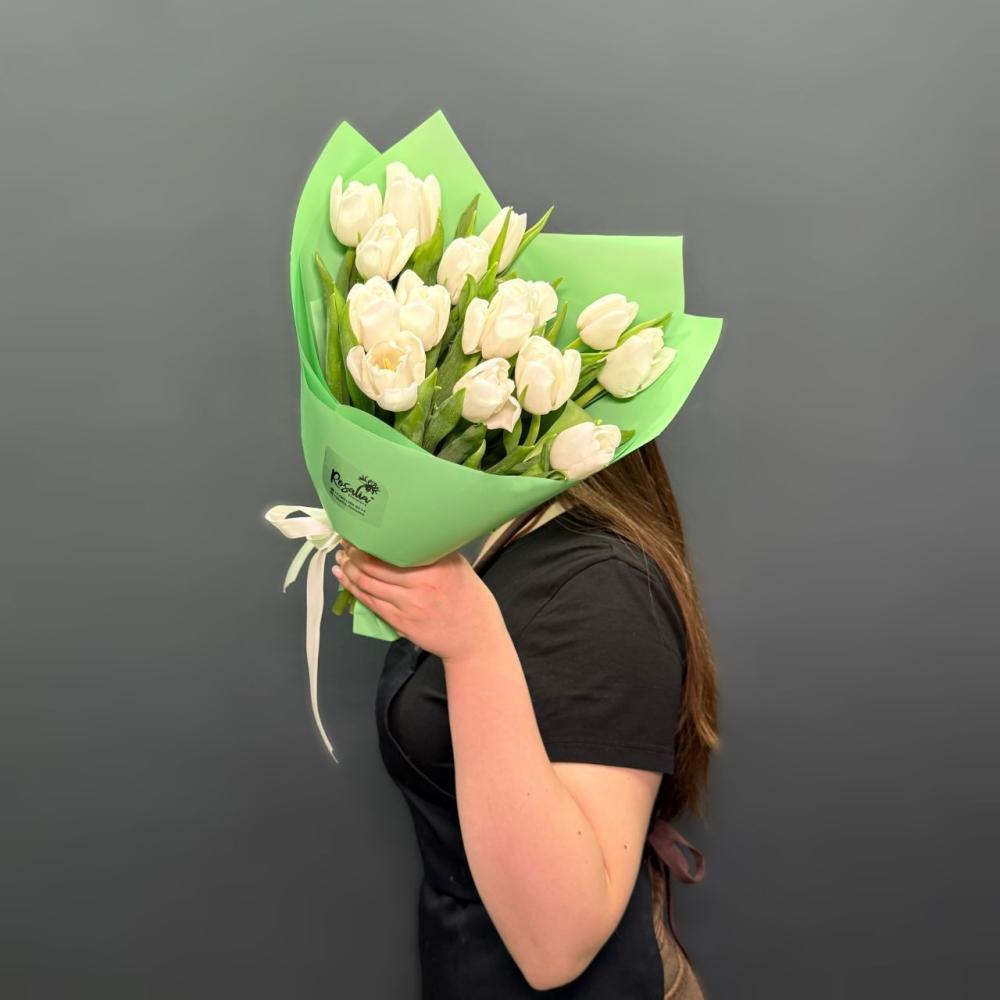 Монобукет из 15 белых тюльпанов Доставляется в транспортировочной коробке