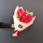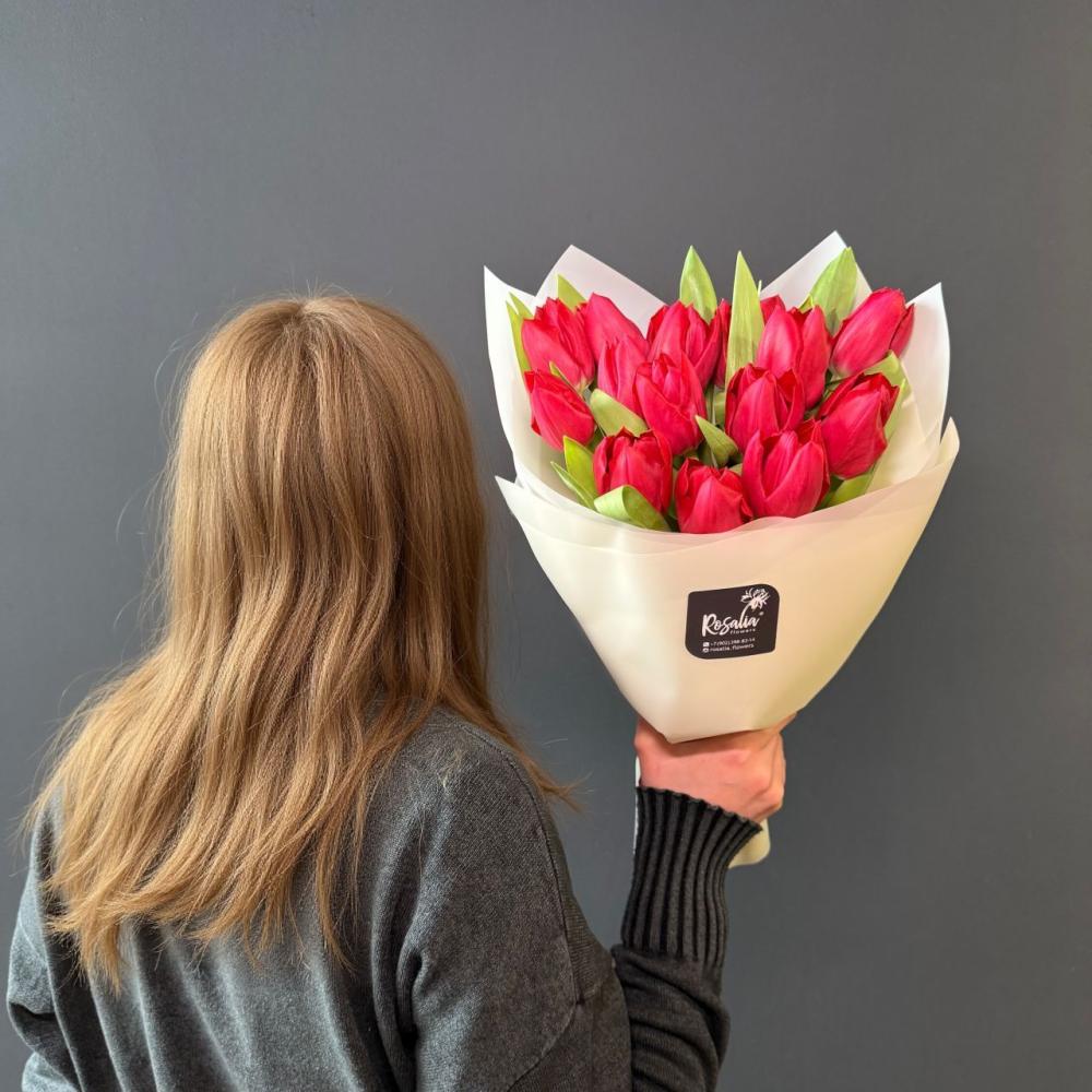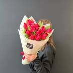 Монобукет из прекрасных красных тюльпанов. В букете 15 штук. Доставляется в транспортировочной коробке