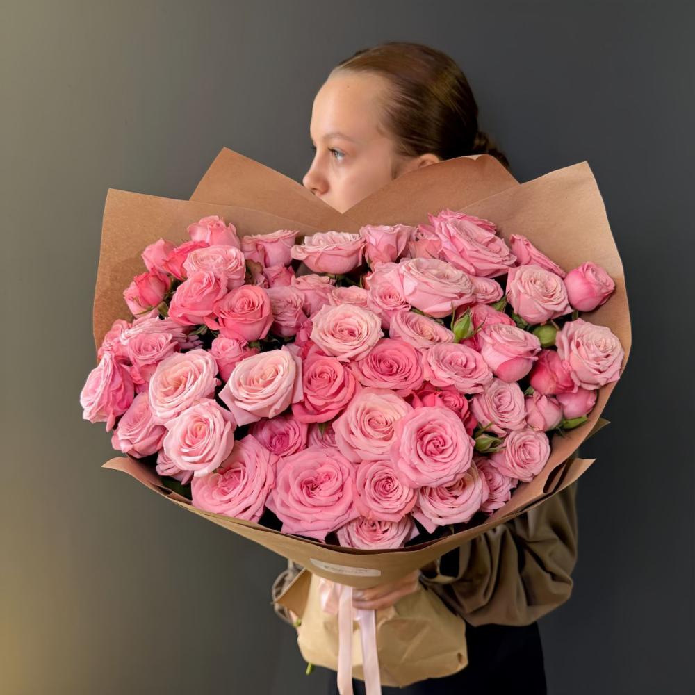 Монобукет из 15 кустовых роз в упаковке Доставляется в транспортировочной коробке