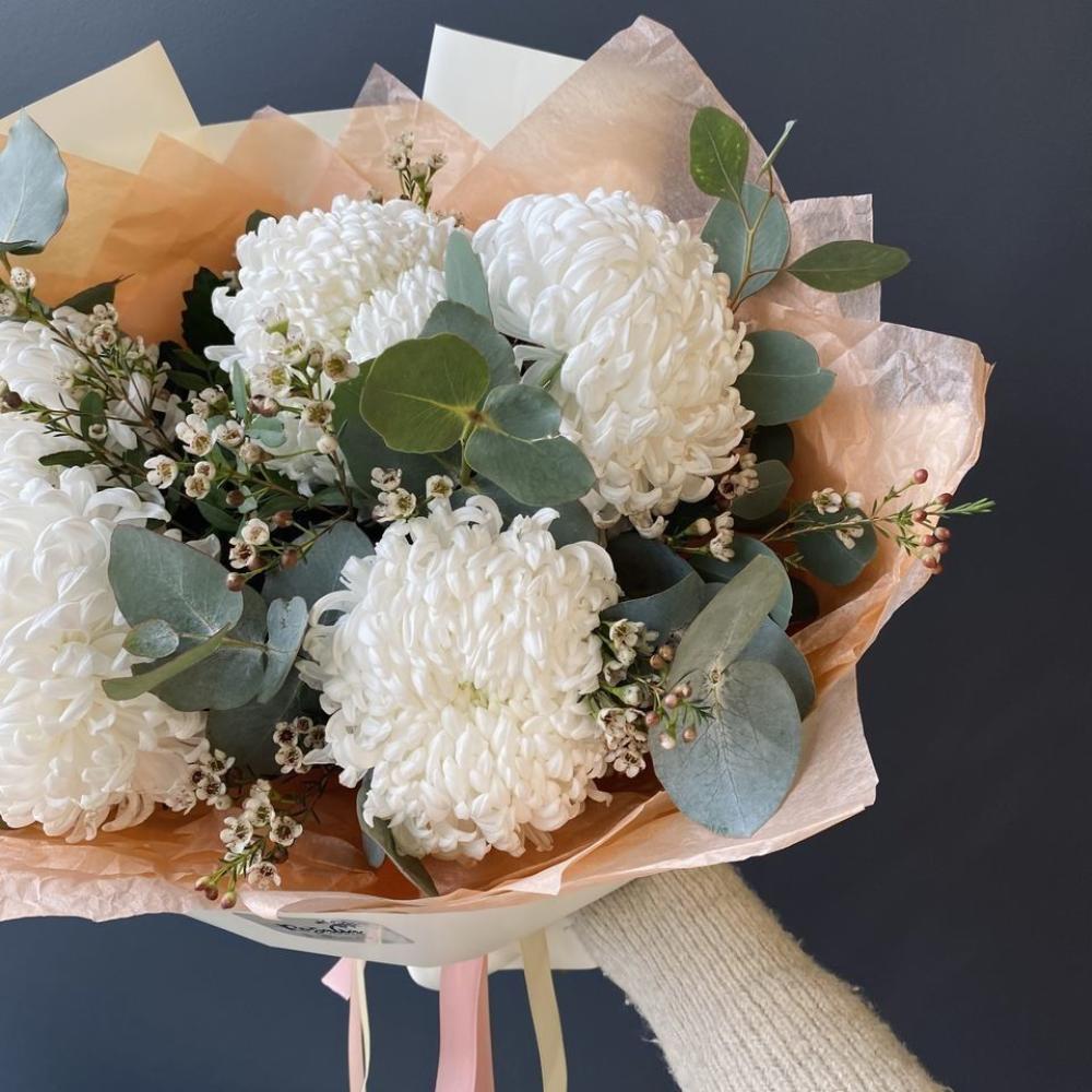 Воздушный букет из сезонных хризантем Доставляется в транспортировочной коробке