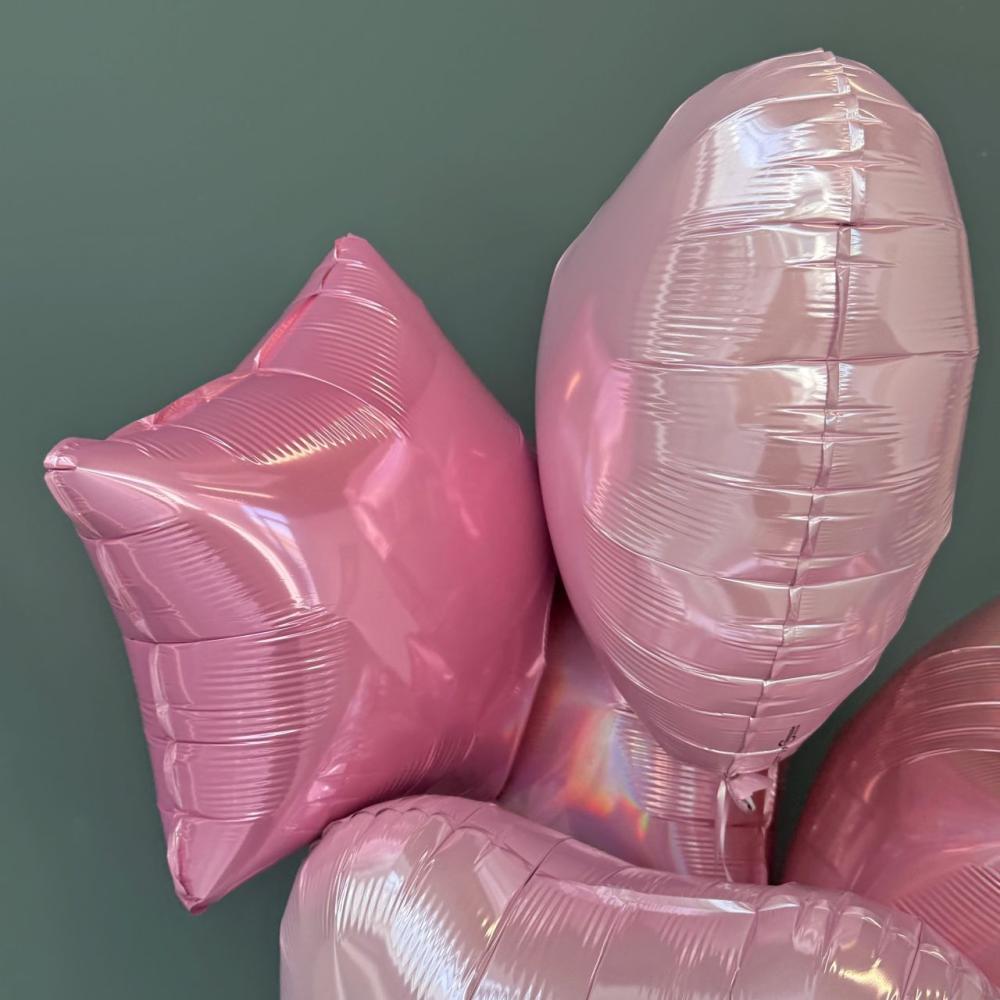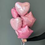 Нежный сет из 7 розовых шаров в виде звезд и сердец.