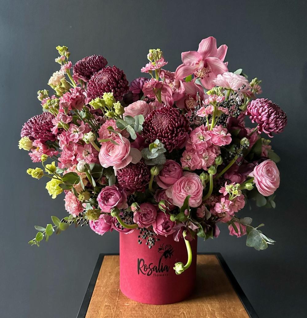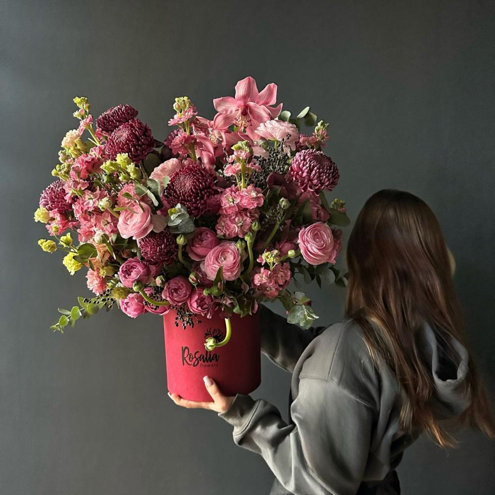 Каждый наш букет - дизайнерская композиция. Все их невозможно повторить в точности из-за сезонности и природной уникальности внешнего вида каждого цветка. Но мы сохраним размер, атмосферу и стилистику.