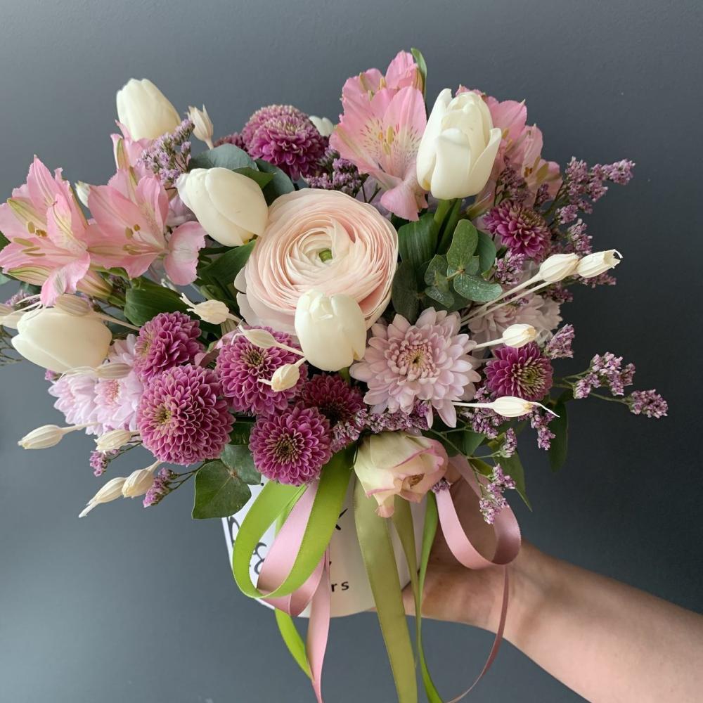 Каждый наш букет - дизайнерская композиция. Все их невозможно повторить в точности из-за сезонности и природной уникальности внешнего вида каждого цветка. Но мы сохраним размер, атмосферу и стилистику.