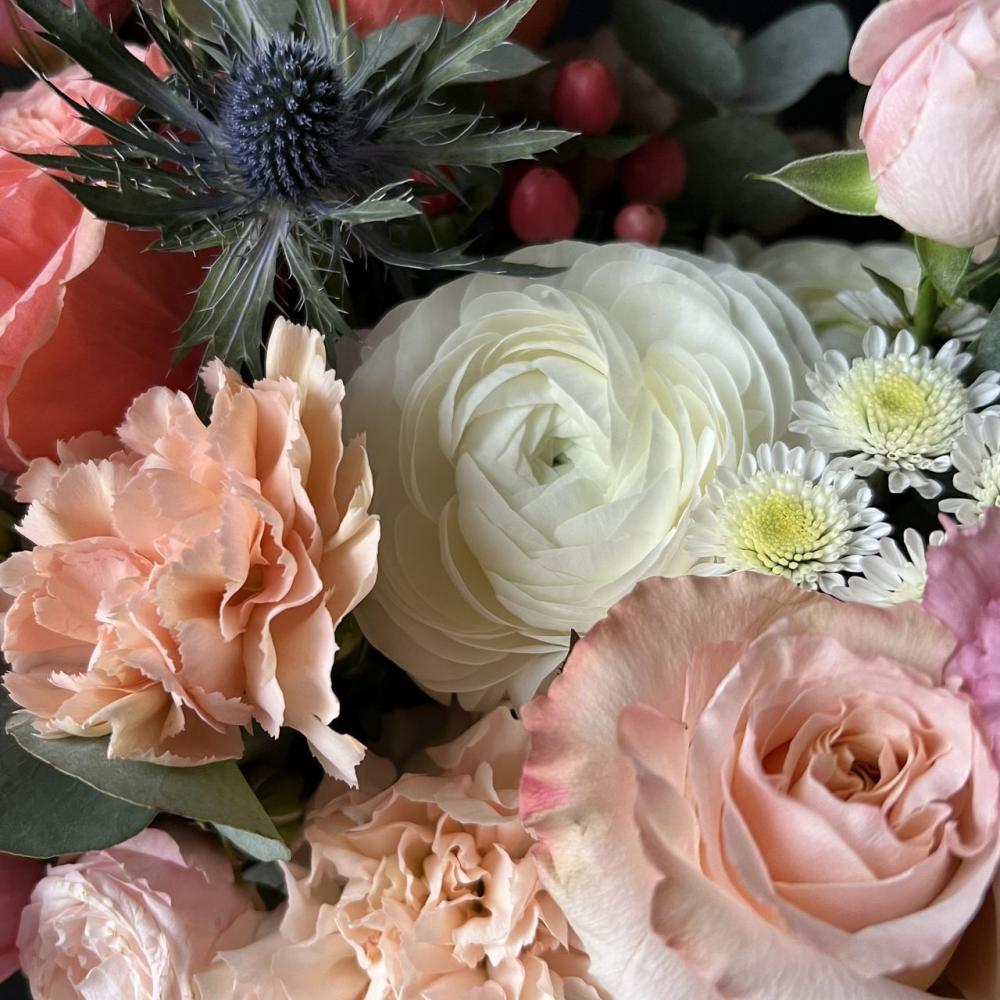 Каждый наш букет - дизайнерская композиция. Все их невозможно повторить в точности из-за сезонности и природной уникальности внешнего вида каждого цветка. Но мы сохраним размер, атмосферу и стилистику.