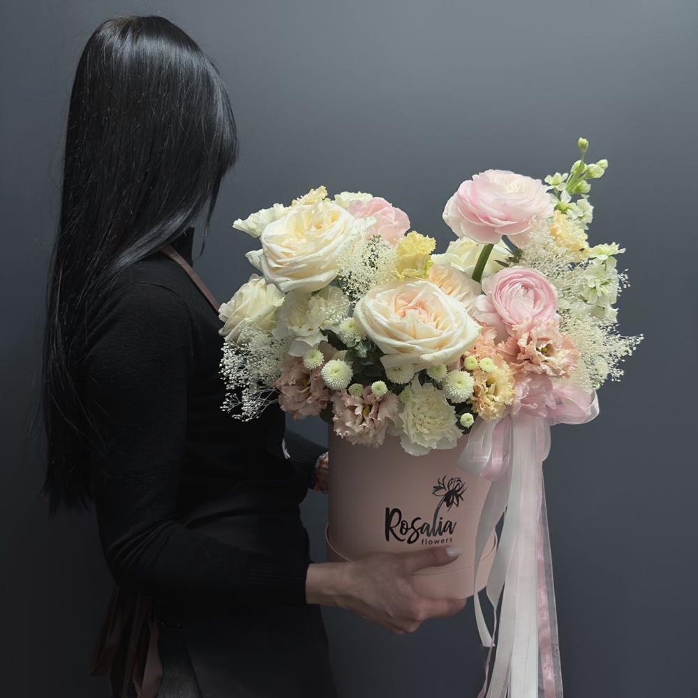 Каждый наш букет - дизайнерская композиция. Все их невозможно повторить в точности из-за сезонности и природной уникальности внешнего вида каждого цветка. Но мы сохраним размер, атмосферу и стилистику.