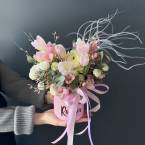 Каждый наш букет - дизайнерская композиция. Все их невозможно повторить в точности из-за сезонности и природной уникальности внешнего вида каждого цветка. Но мы сохраним размер, атмосферу и стилистику.