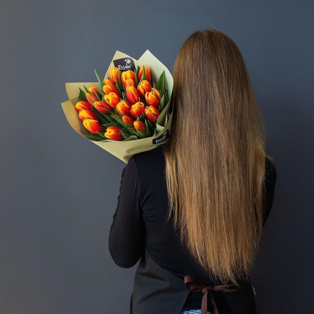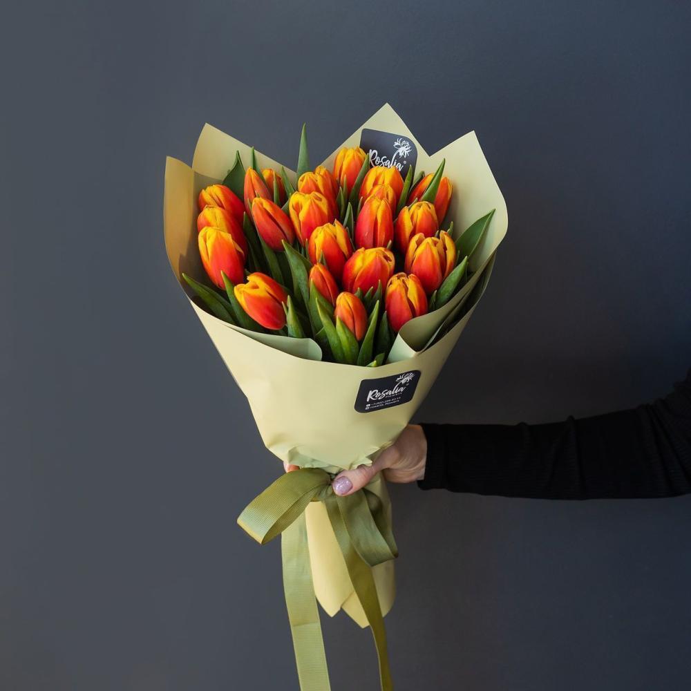 Букет из ярких оранжевых тюльпанов Доставляется в транспортировочной коробке