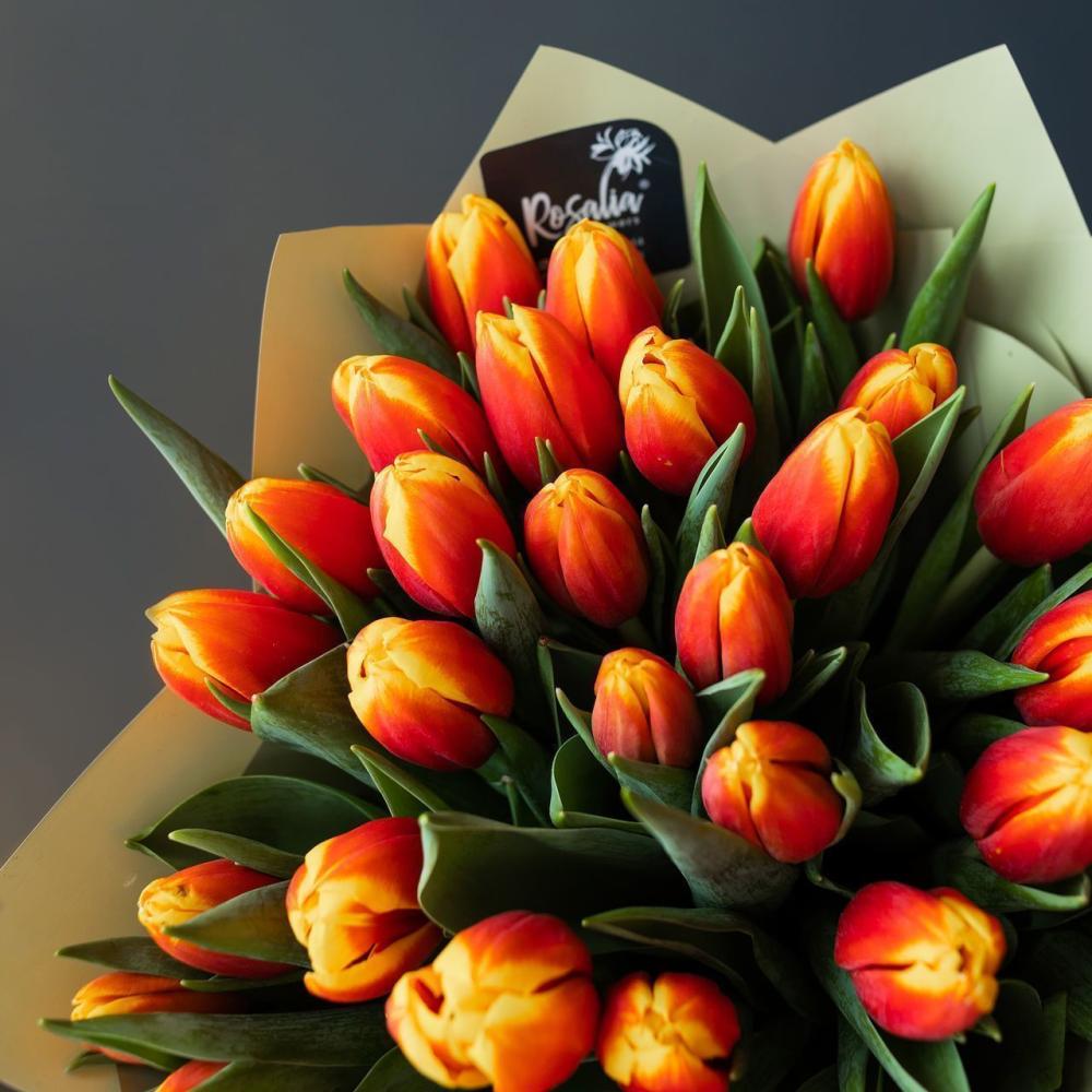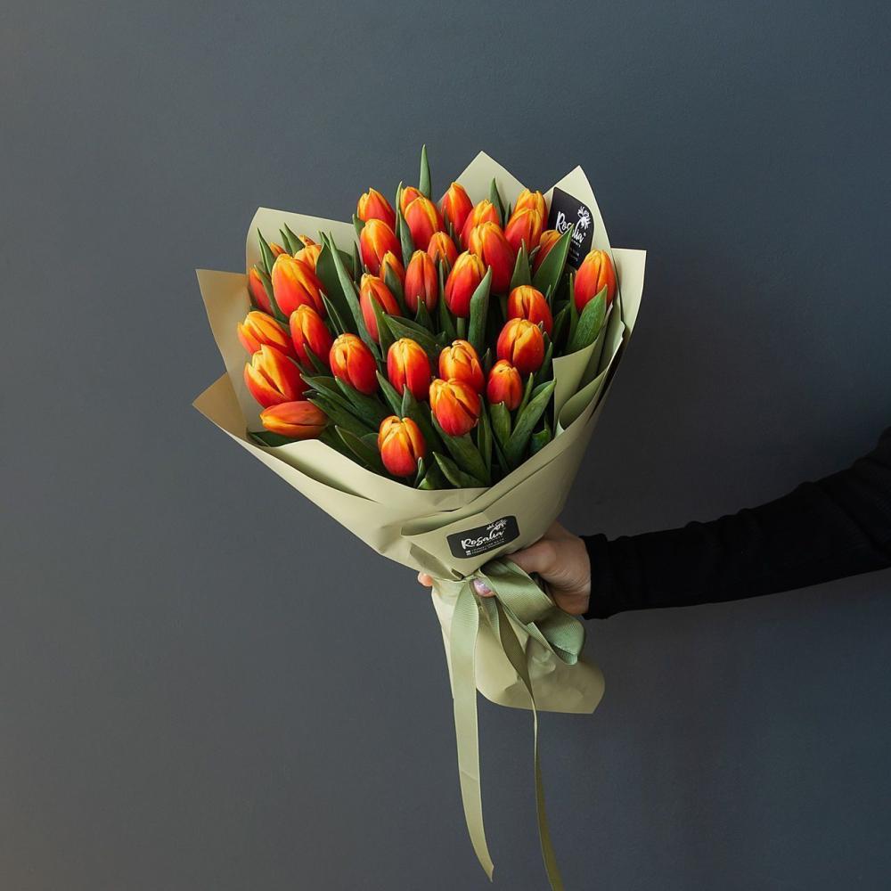 Букет из ярких оранжевых тюльпанов Доставляется в транспортировочной коробке