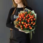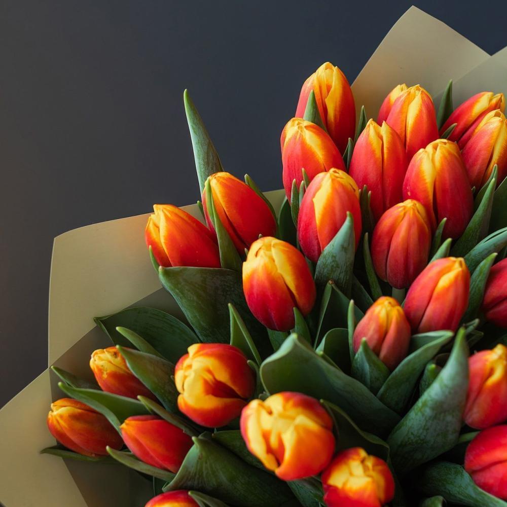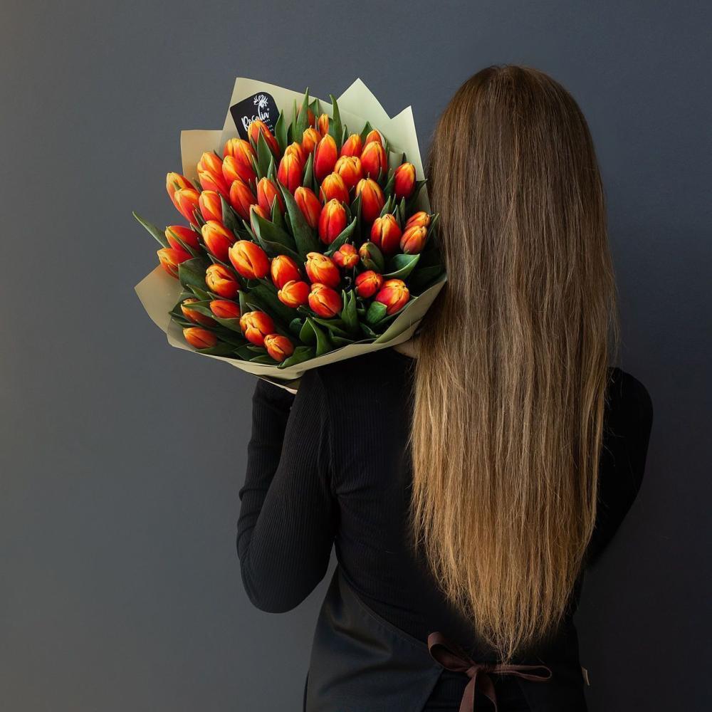 Букет из ярких оранжевых тюльпанов Доставляется в транспортировочной коробке