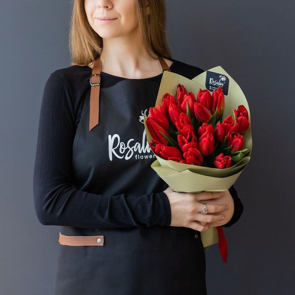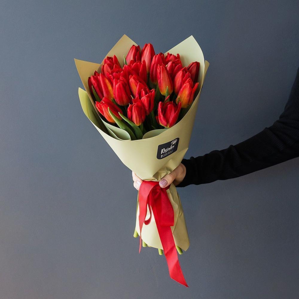 Букет из ярких красных тюльпанов Доставляется в транспортировочной коробке