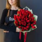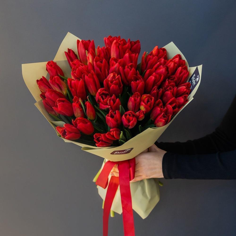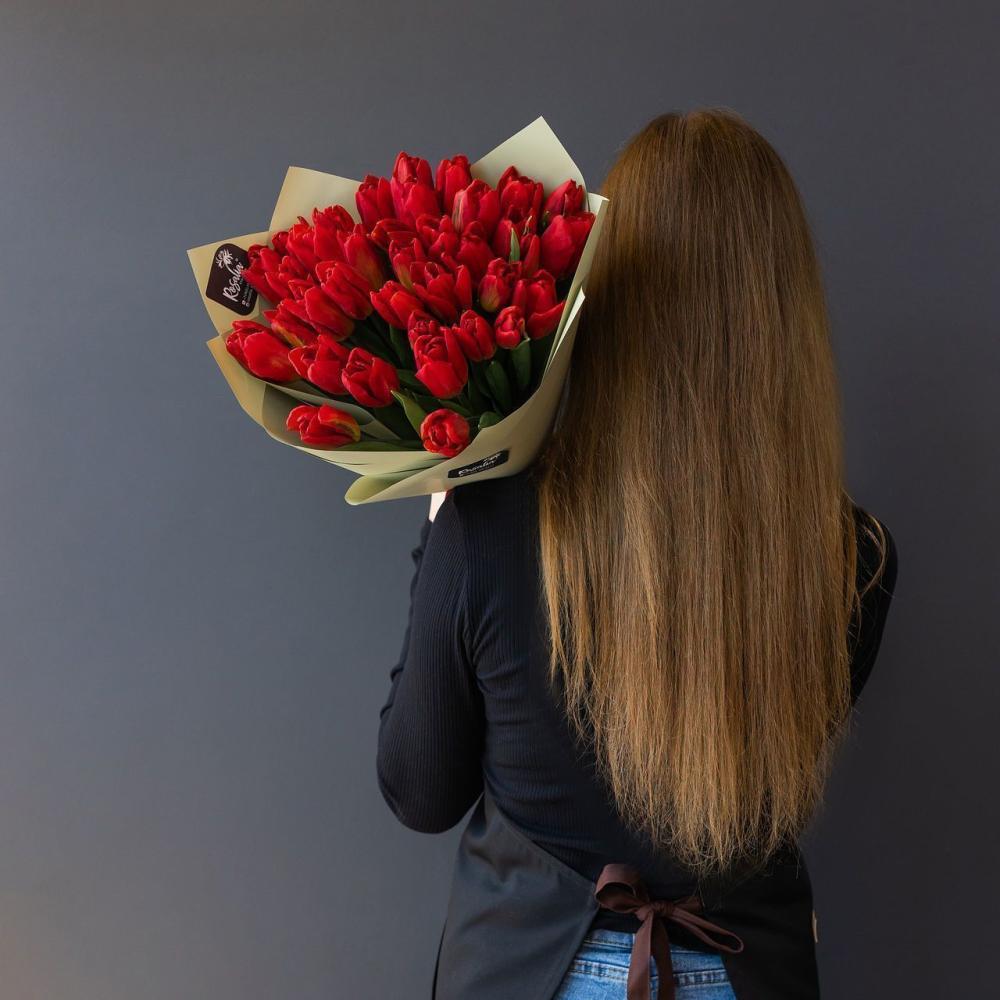 Букет из ярких красных тюльпанов Доставляется в транспортировочной коробке