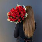 Невероятный букет из красных тюльпанов никого не оставит равнодушным Доставляется в транспортировочной коробке