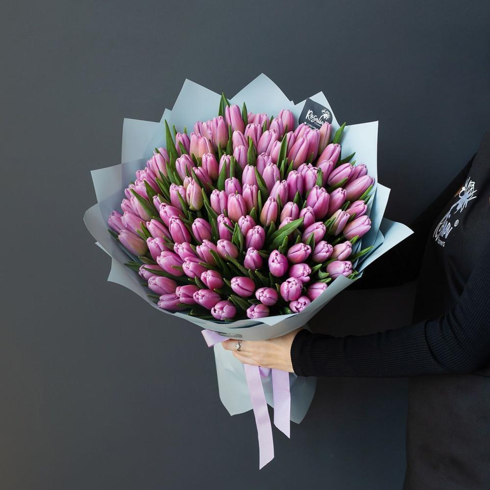 Монобукет из 101 шикарного тюльпана Доставляется в транспортировочной коробке