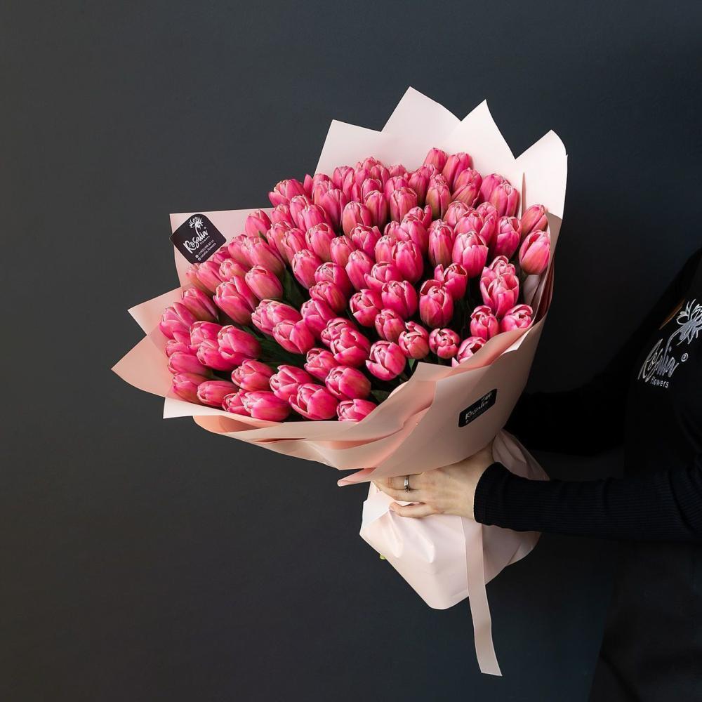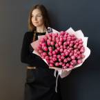 Монобукет из 101 шт розовых тюльпанов Доставляется в транспортировочной коробке