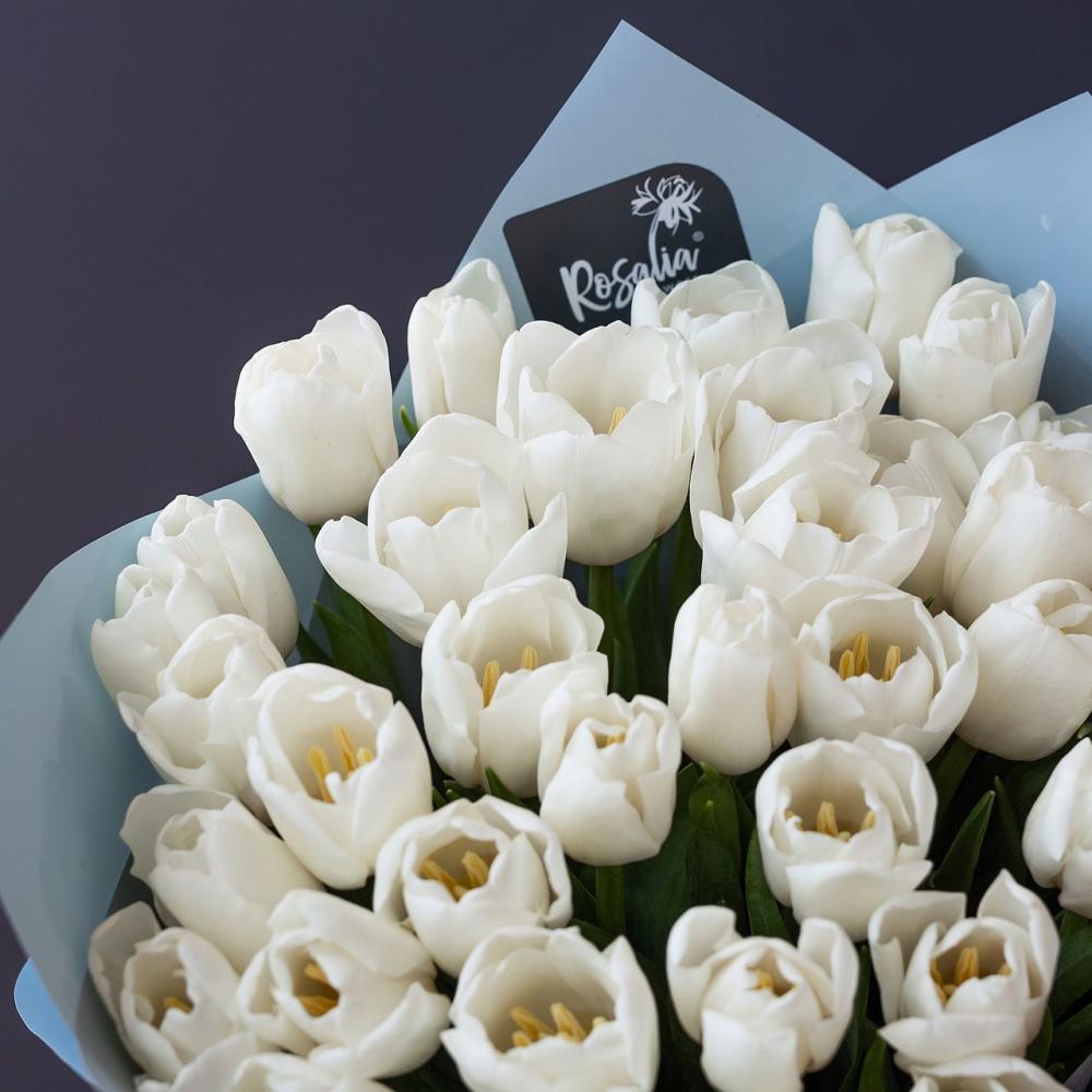 Монобукет из 35 шт белых тюльпанов Доставляется в транспортировочной коробке