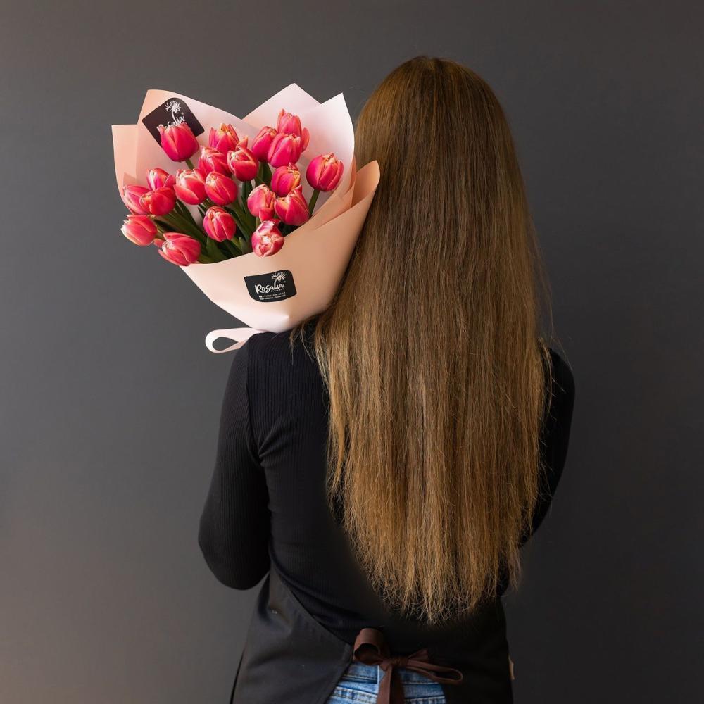 Монобукет из 21 шт пионовидных тюльпанов Доставляется в транспортировочной коробке