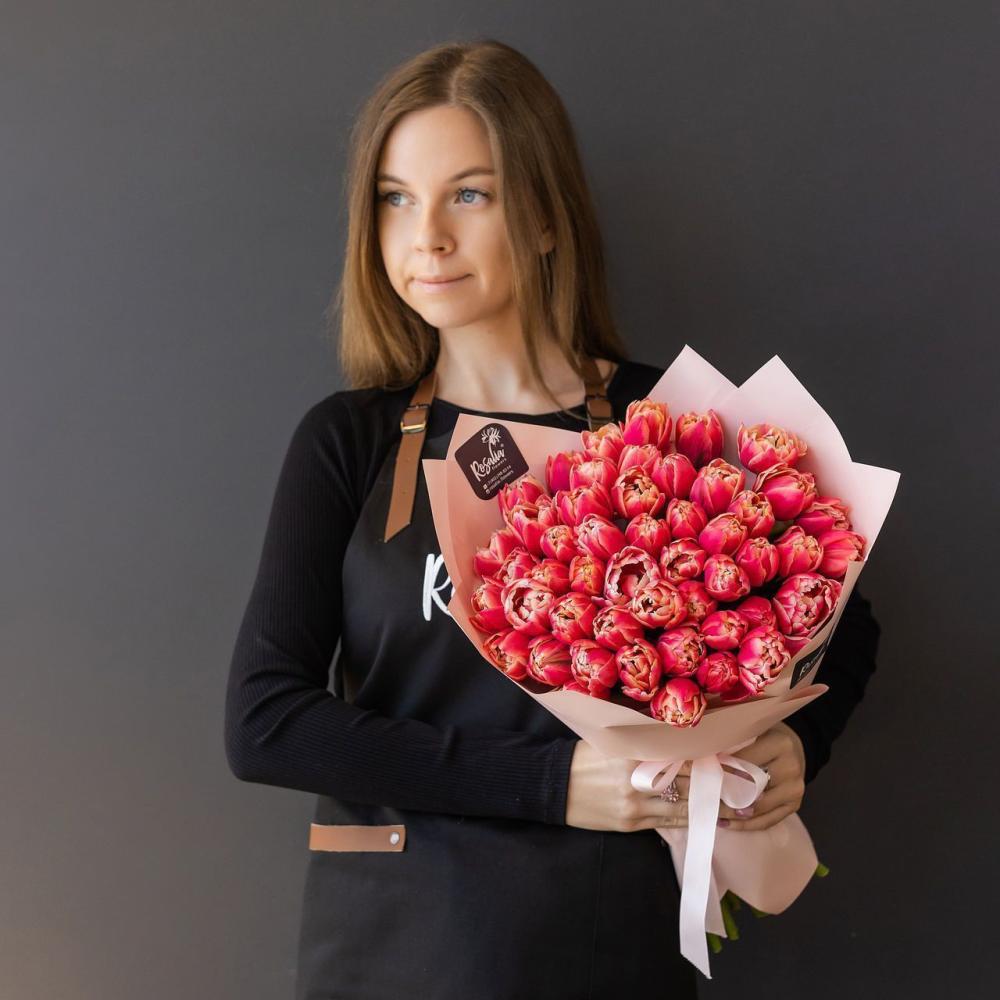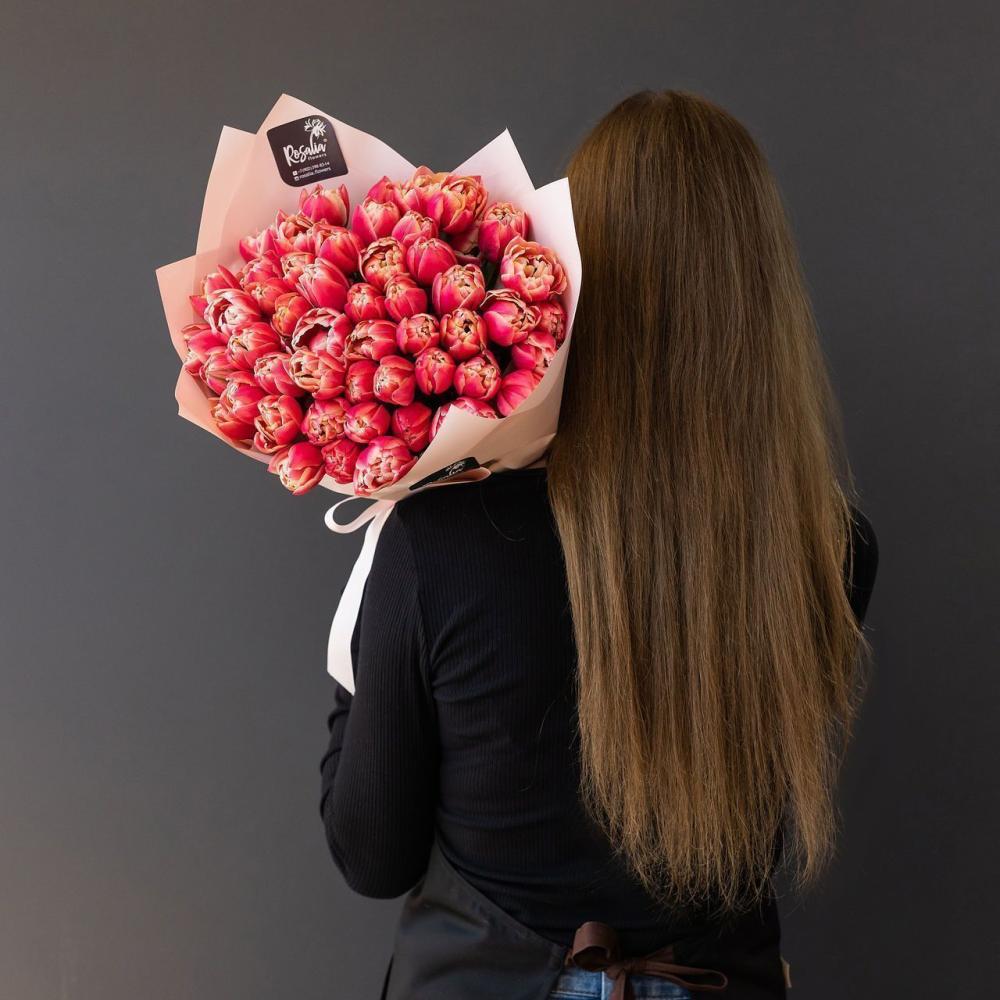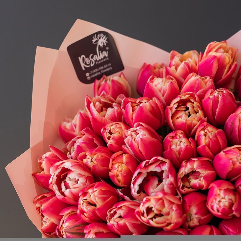 Монобукет из 51 шт пионовидных тюльпанов Доставляется в транспортировочной коробке
